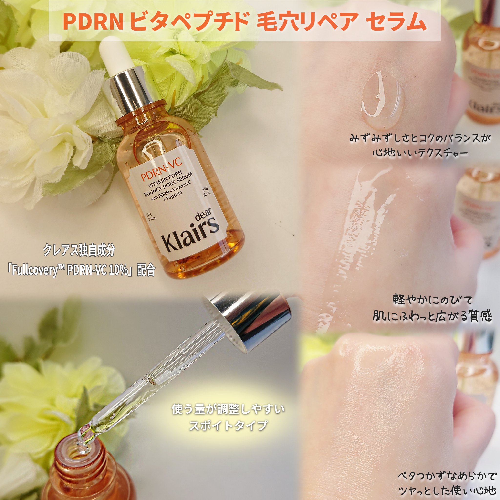 Klairsさまより商品提供をいただきました。💛KlairsPDRNビタペプチド毛穴リペアセラム35ml弾むようなハリと毛穴ケアを叶えるリペアセラム🫧サーモンPDRNよりはるかに優れた植物性PDRNを配合!!!とろみのあるテクスチャーで肌馴染...