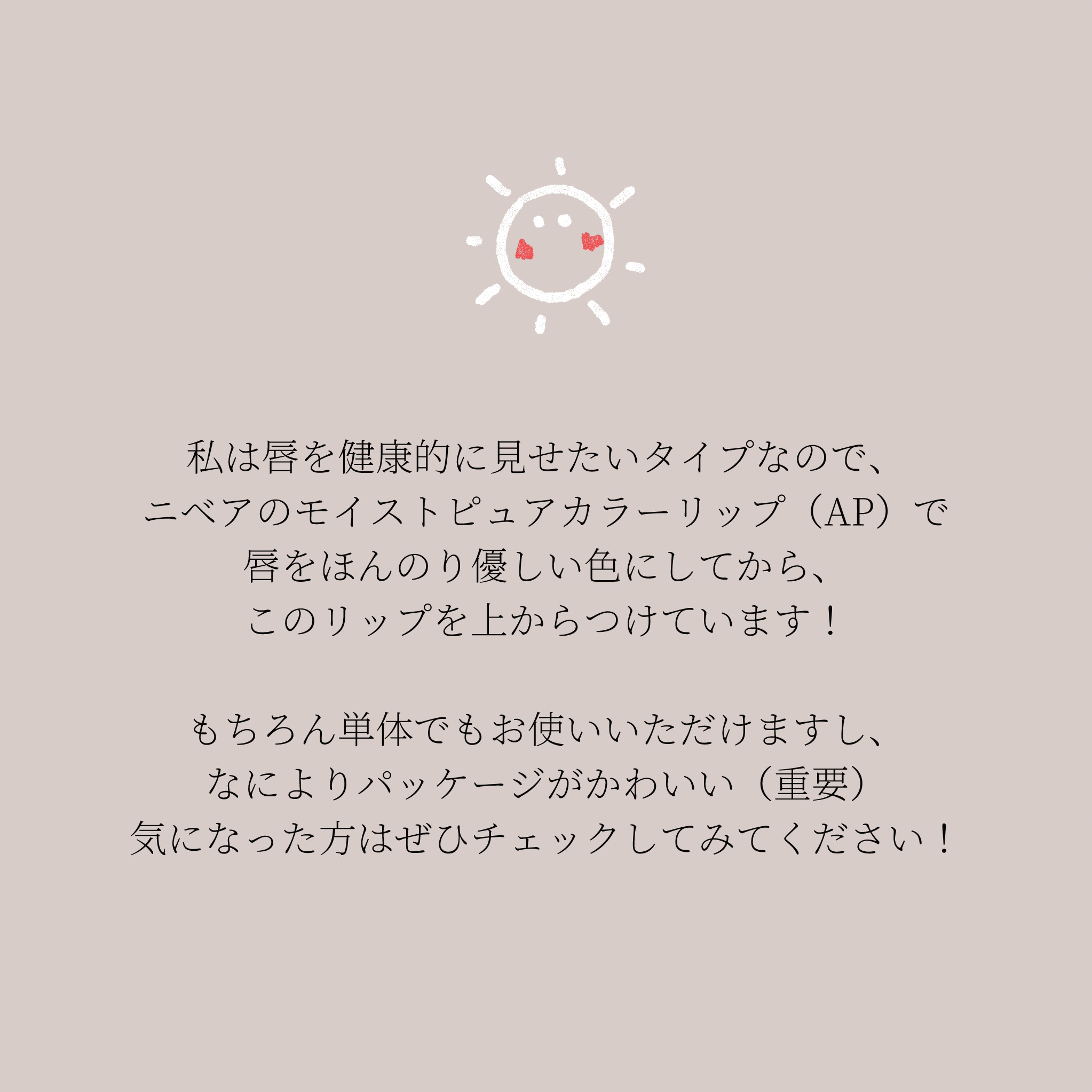 | 水彩画のように滲む血色感と儚いカラー。唇だけ天使のように儚くなれるのでめちゃめちゃお気に入りです👼🏻♡ | 詳細を見る | ||