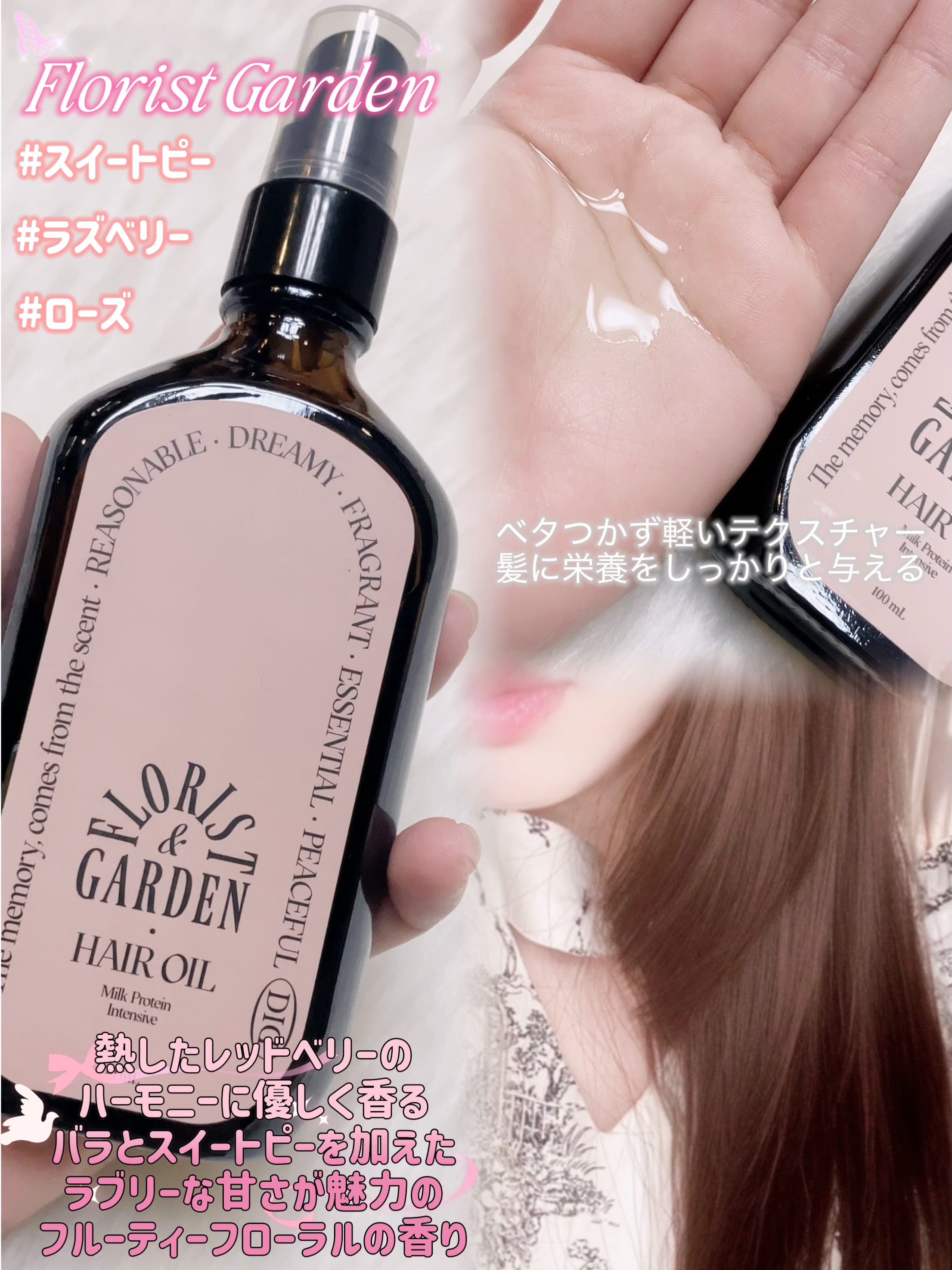 オーディッド(odiD)ミルクプロテインインテンシブヘアオイルFLORISTGARDEN熟したレッドベリーのハーモニーに、優しく香るバラとスイートピーを加えたラブリーな甘さが魅力のフルーティーフローラルな香り高濃縮アルガンオイルと、その他5種...