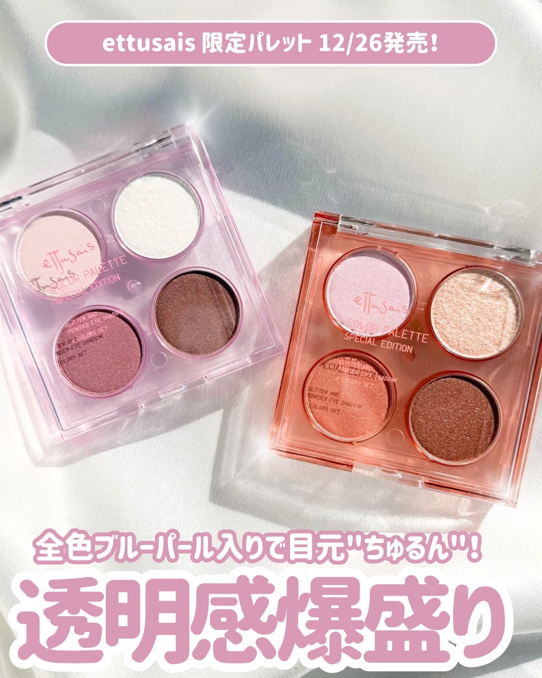 ✨️数量限定!特別なカラーパレットで作るホリデーアイズ👀エテュセカラーパレットスペシャルエディション全2種各¥2,310(税込)01エンジェリックモーブ02シュガーコーラルパーソナルカラー問わず使いやすいモーブ系とコーラル系の2種展開✌️...