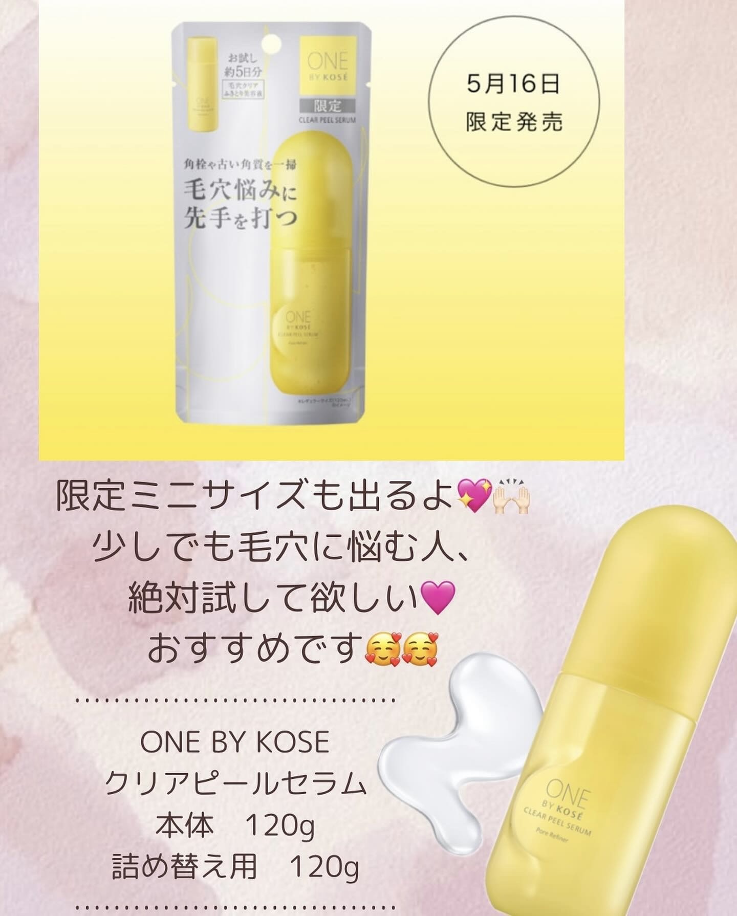 .ONEBYKOSEクリアピールセラム私のリピートアイテム🧴💛黒ずみ毛穴や詰まり毛穴など種類の違う毛穴悩みや、角質にもしっかりアプローチしてくれるふきとり美容液✨朝晩の洗顔後に使えて、毎日使用できる🙆🏻♀️角質・毛穴ケアアイテムは乾燥が気に...