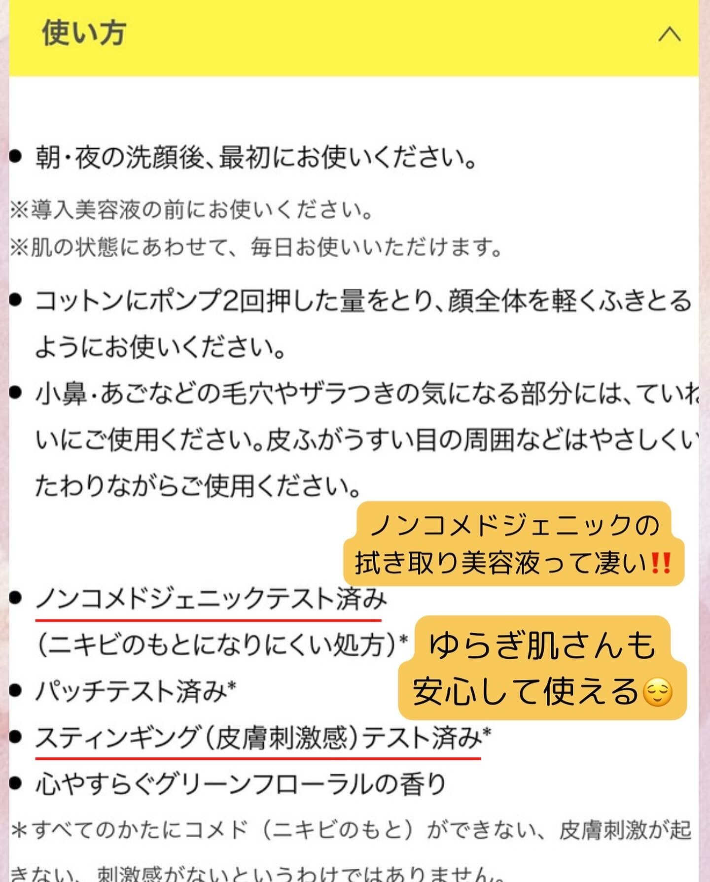 | ベタつかずサラッとしていて使用感が良いです✨ 心なしか肌の透明感が上がったような気もします! | 詳細を見る |