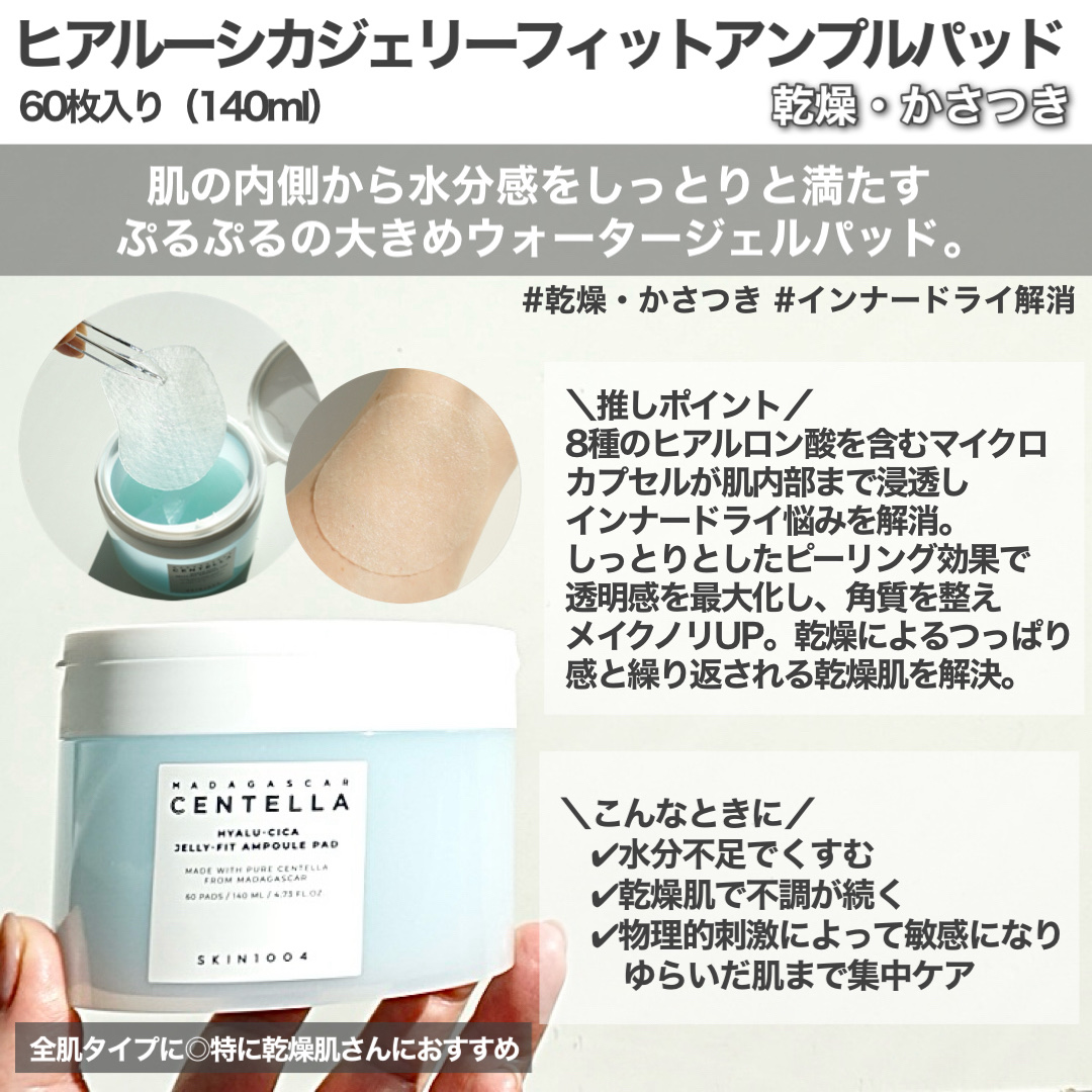 🪄SKIN1004アンバサダーとしての投稿になります✨SKIN1004👼🪽⚫︎センテラクイックカーミングパッド⚫︎ヒアルーシカジェリーフィットアンプルパッド⚫︎トーンブライトニングダークスポットアンプルパッド使用する前はエッセンスだけ違うのか...