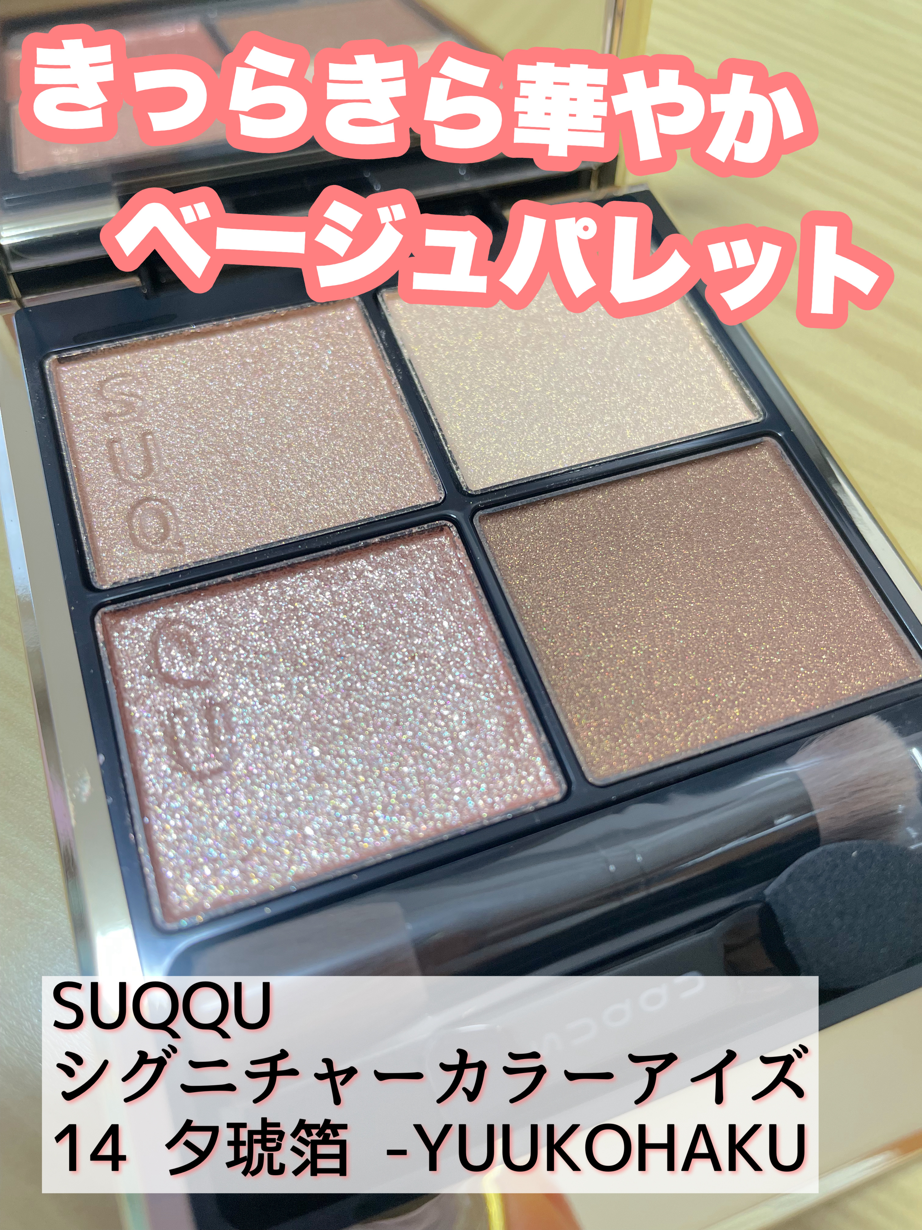 SUQQUの春コレクションから定番色として発売した、新色が可愛すぎる!! 若干くすみ感もありつつ、温かみのある配色でイエベもブルベも使用しやすいパレット✨ どんなシチュエーションでもOKな万能ベージュに、華やかなざくざくラメがとっても綺麗です❤️ 早くも今年のベスコス入りの予感☺️ 是非チェックしてみて下さいね♪