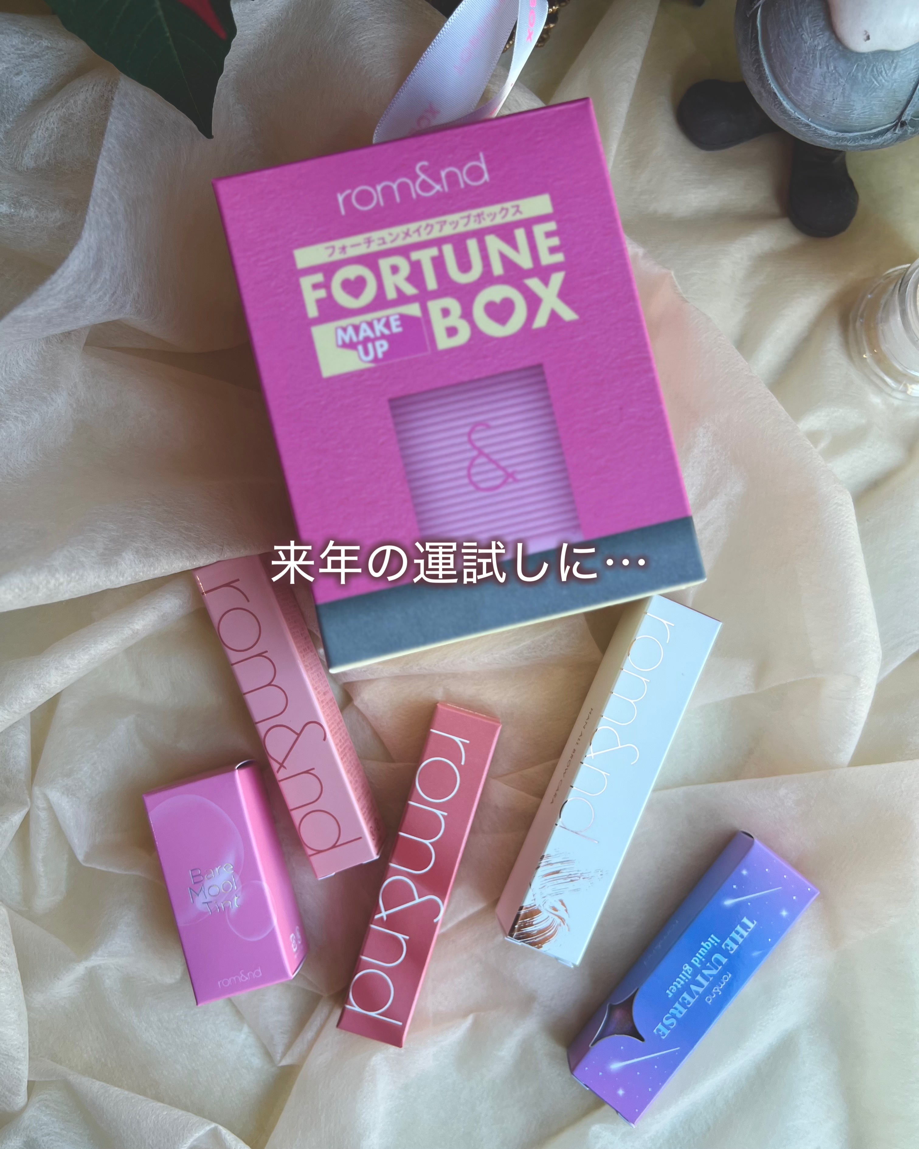 #PRrom&nd@romand_jp@remake_officialFORTUNEMAKEUPBOXrom&ndの大人気商品がランダムに詰め込まれたスペシャルフォーチュンボックス💗商品構成①ハンオールブロウカラ②リキッドグリッターシャドウ③...