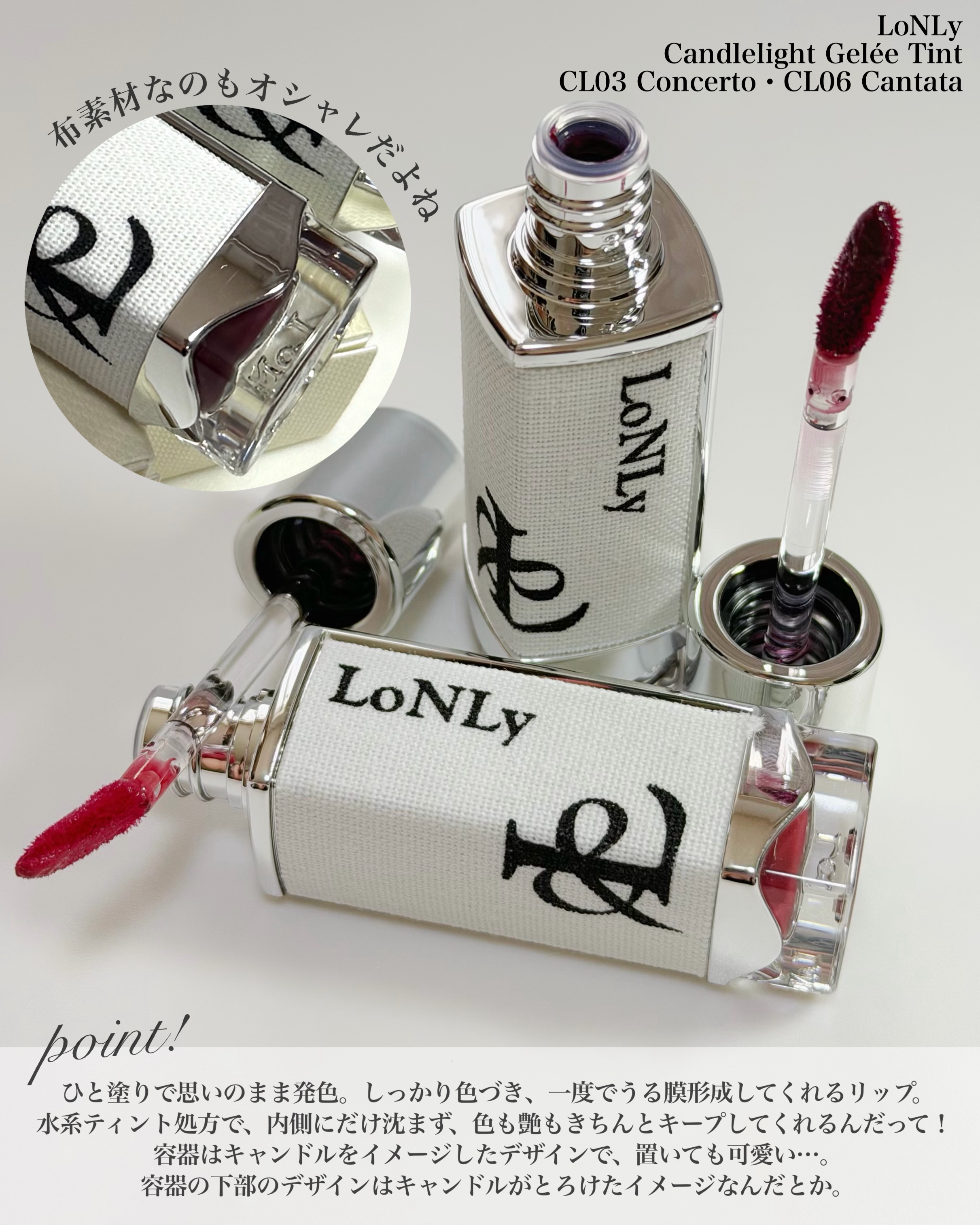 ひと塗りでツヤ膜コーティング👼🏻✨11月から新発売のLoNLyのジュレティント❣️🌟LoNLyキャンドルライトジュレティント[CL03Concerto/CL06Cantata] 【参考価格】¥1,870灯りを吹き消す唇が照らされるような艶めき...