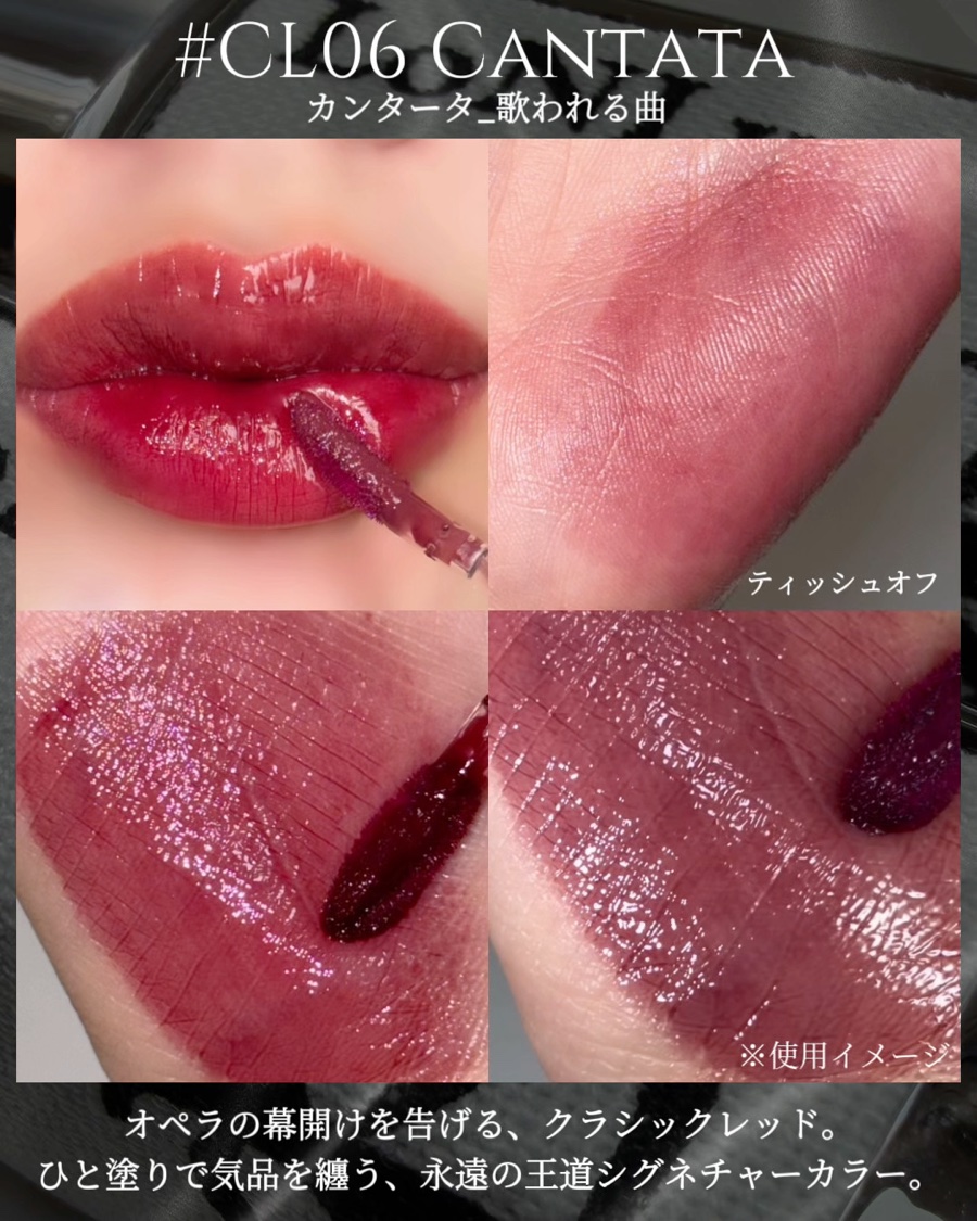 - ろうそくの火を吹き消した瞬間に残る、“艶の残像”をイメージしたリップティント。 ジュレ質感で厚みのある唇※を演出し、透明感と奥行きのある仕上がり※を実現します。 ※メイクアップ効果による。
