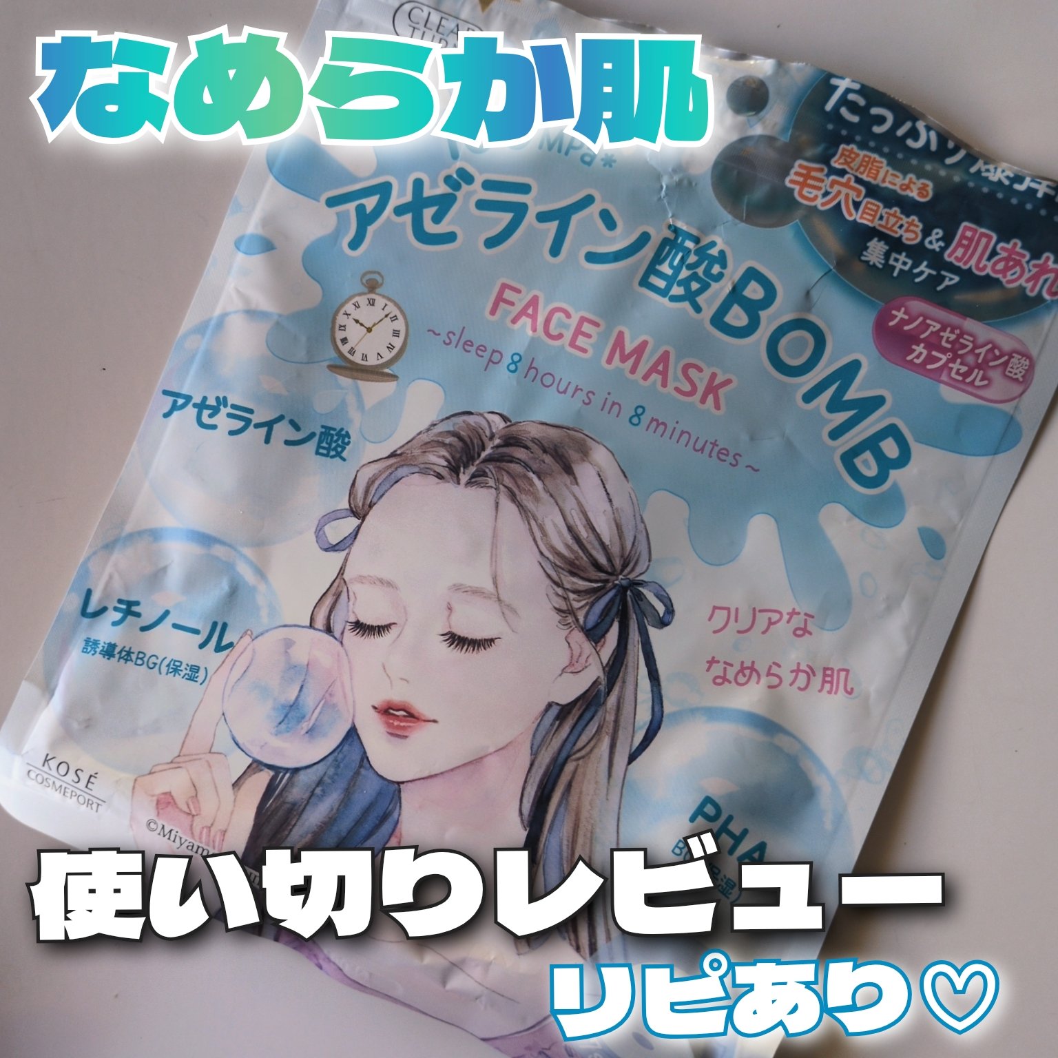 - 大人気の「クリアターン」イラストシリーズから 皮脂による毛穴目立ち・肌あれ*1をケアする『アゼライン酸BOMBマスク』が新発売✨ アゼライン酸・レチノール誘導体・BG(全て保湿)配合。 たっぷり爆弾級*2のうるおいで、皮脂トラブルが気になる肌も、素肌バランスをととのえ、クリアななめらか肌へ。 *1肌あれを防ぐこと *2はじけるようなうるおいのある使用感のこと