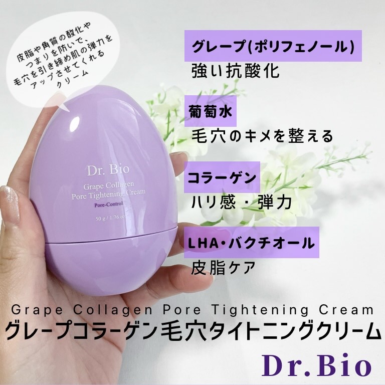 【PR】Dr.Bioグレープコラーゲン毛穴タイトニングクリームドクターバイオ様よりご提供いただきました♪ころんと卵型が可愛いセラム&クリームのシリーズから、私はグレープコラーゲンのクリームを選択しました🍇どれも魅力的で迷ったのですが、毛穴ケア...