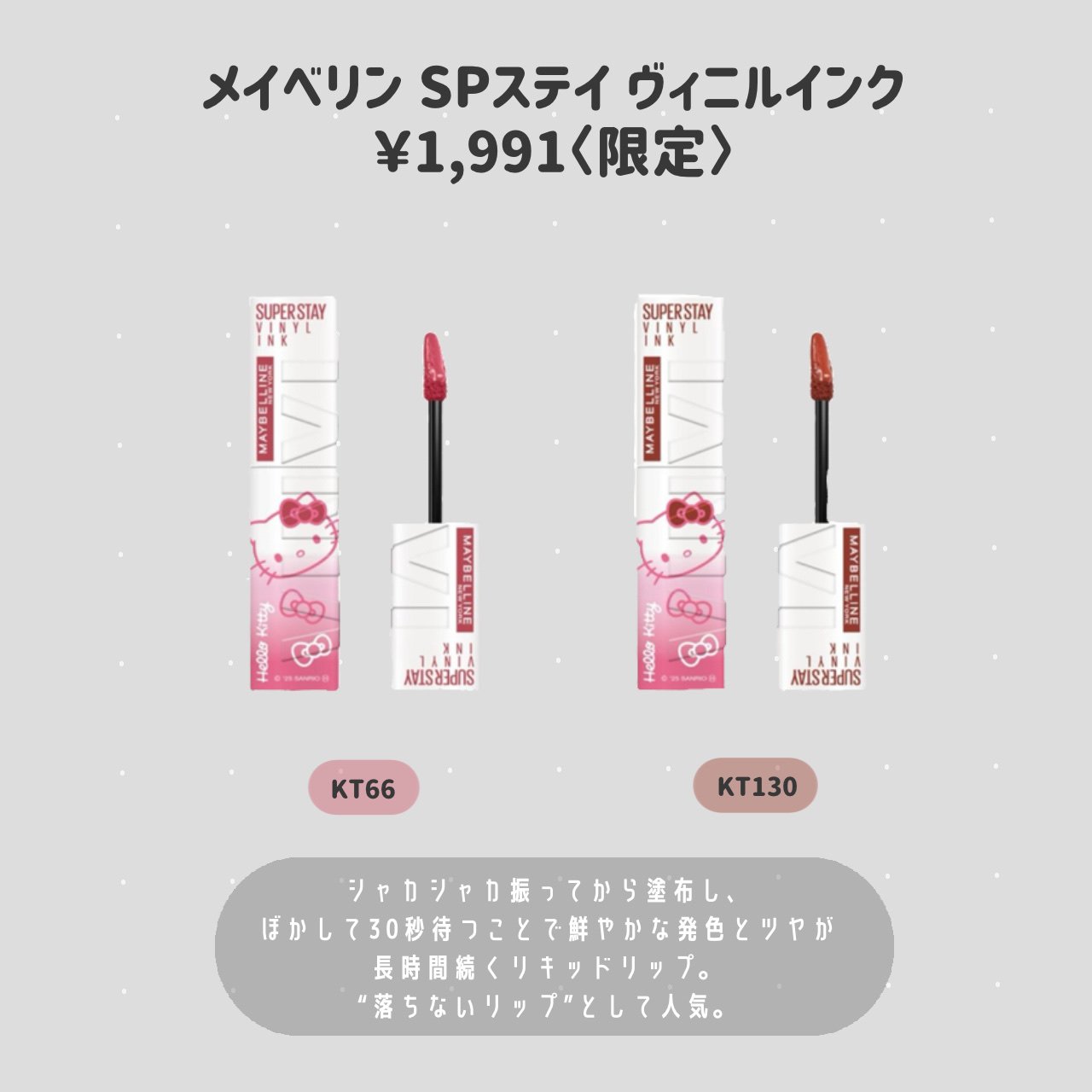 .MAYBELLINENEWYORKがハローキティとコラボレーション👏各カテゴリ人気No.1アイテムが限定デザインで登場✨️12月20日発売❤数量限定・フィットミーリキッドファンデーションR・スカイハイ・SPステイヴィニルインク・ハイパーシャ...