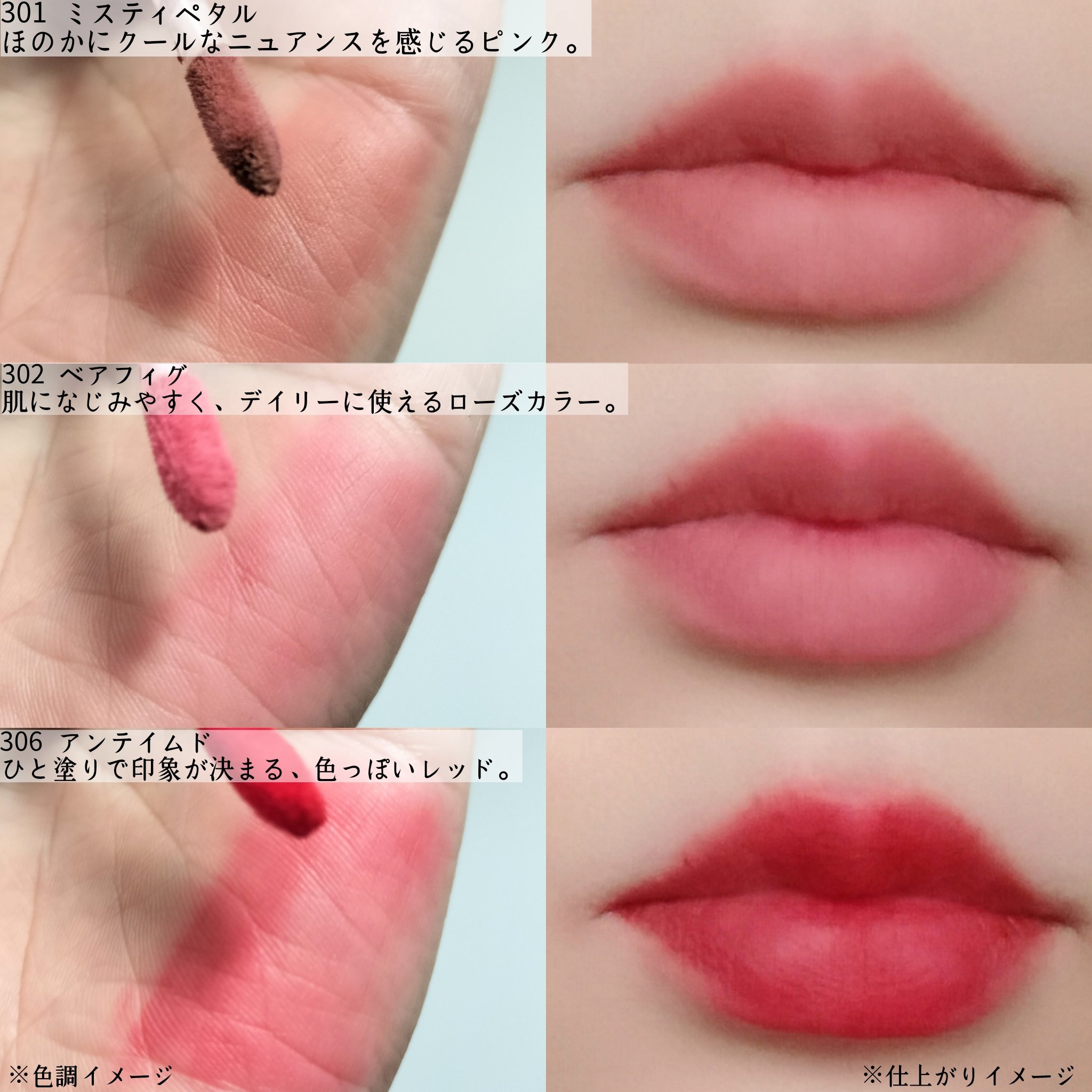 Coralhazeベアベルベットティント@coralhaze_jpマットリップの印象をやさしく更新する「コーラルヘイズ」の新作!大人っぽい可愛さのあるパッケージ、全6色の中から、💋301ミスティペタル💋302ベアフィグ💋306アンテイムドの3...