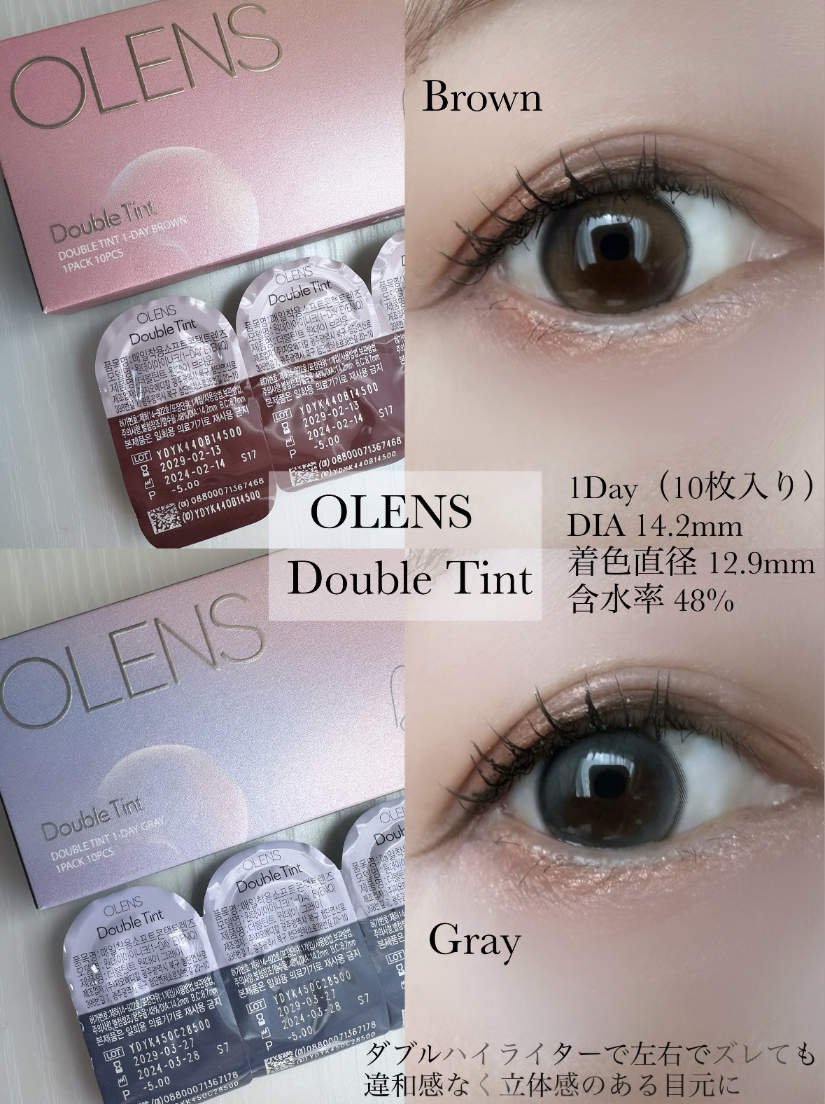 \うるうるカラコン/OLENSGlowyTear1DayBrown/GrayDoubleTint1DayBrown/Gray◆GlowyTear1Day新作は上下で太さの違ううるうるダブルハイライターが可愛すぎる🤍極微細ダブルハイライターと...
