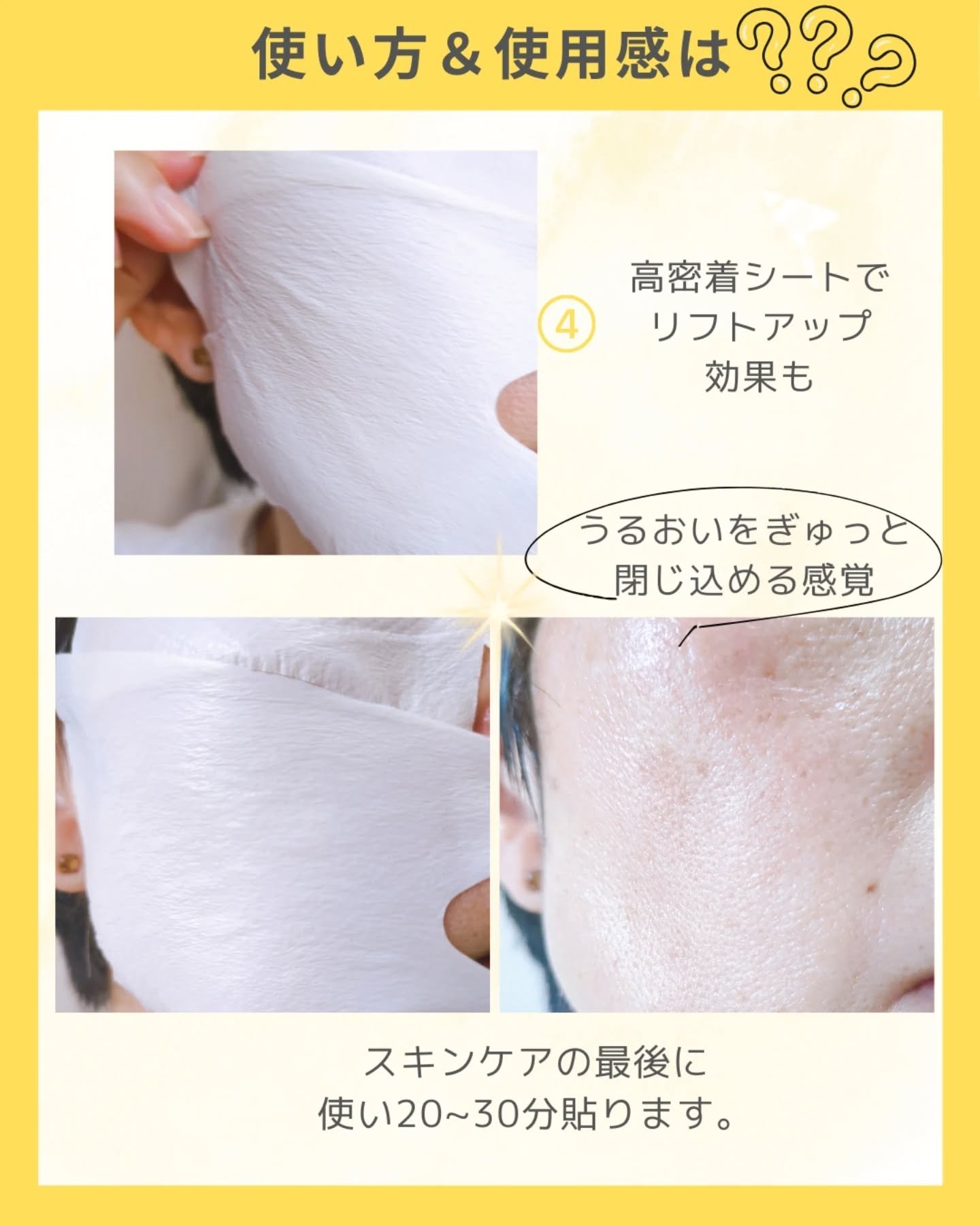 | クリームが満遍なくシートに付いていて、ぴったりと密着し全顔覆い尽くしてしっかりケアできる🤲🏻 | 詳細を見る | |||