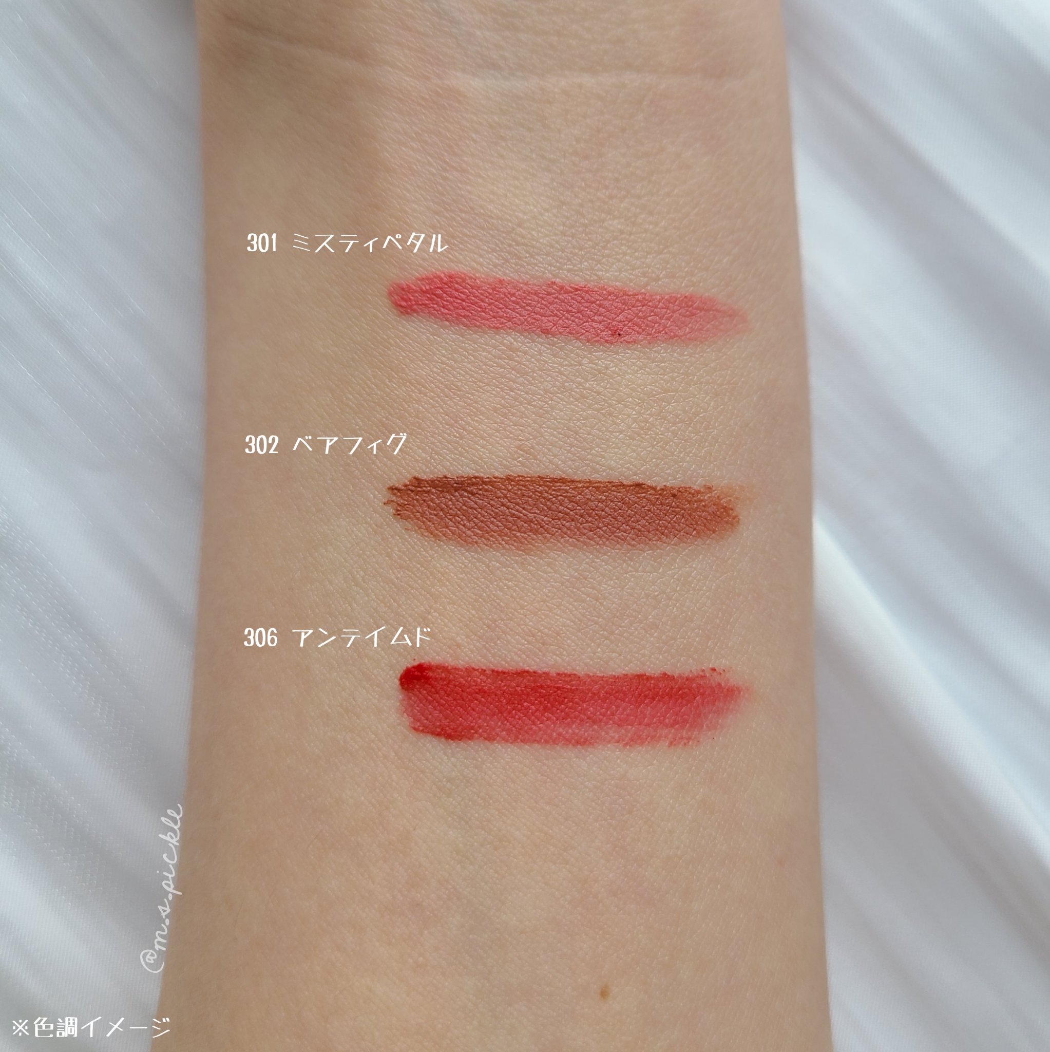 - -「ティント処方」でつけたての色をキープ。 - 少量でも唇全体がふんわりブラーリングされたような仕上がり。 - 乾燥しにくいマット質感で、角質浮きしにくいなめらかなテクスチャー。 - 無香料・パラベン不使用・動物由来成分不使用。