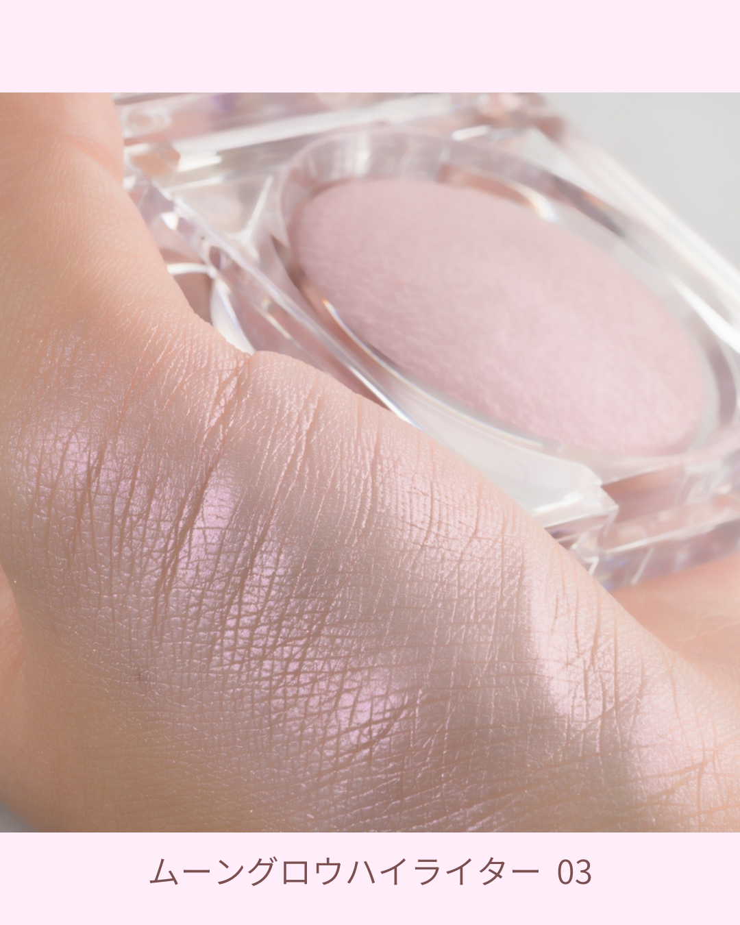 - 月光のような上品つやで立体感🌕 ベイクド製法のハイライター✨ パールを潰さずに焼き固める事で、 パールの輝きを活かせるベイクド製法を採用。 繊細パールを高配合。面で光り輝いているような仕上がりに。 上品な華やかさと自然な立体感を演出します。