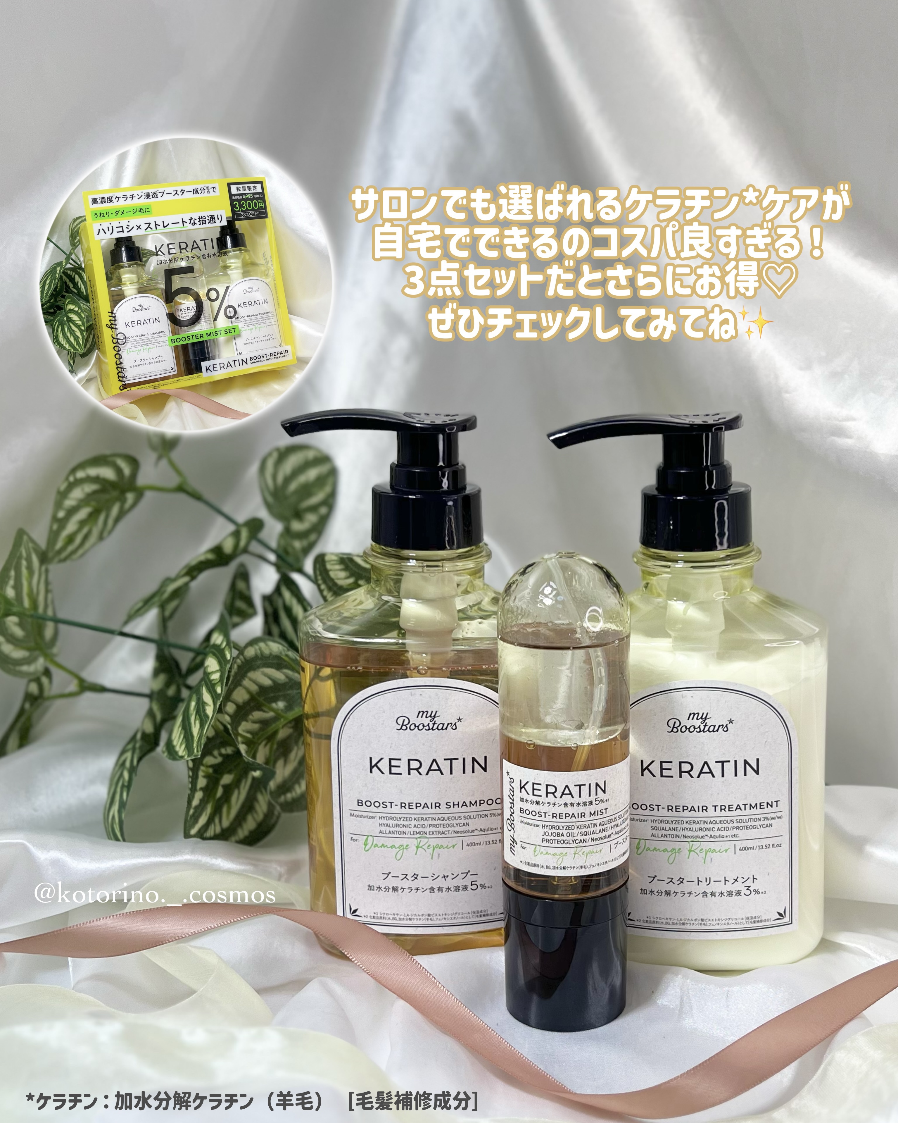 ケラチンシリーズ🧡【𝐦𝐲𝐁𝐨𝐨𝐬𝐭𝐚𝐫𝐬】♡ケラチンシリーズブースターミスト♡ケラチンシリーズシャンプー&トリートメント♡.*・。。・*.♡サロンで使われる毛髪補修成分であるケラチン*¹がたっぷり配合されている「ケラチンシリーズ」🧡独自のブー...