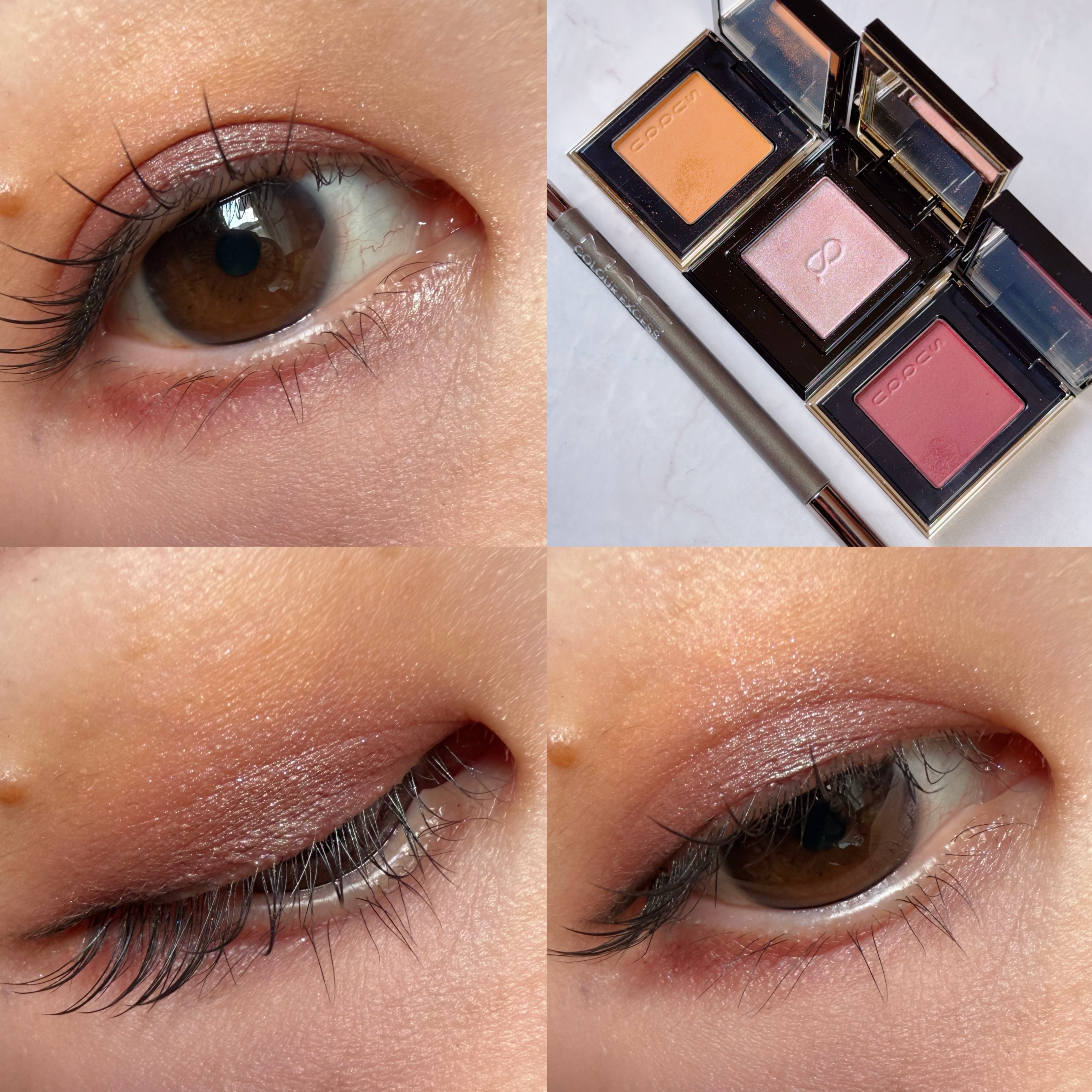 やーっと使えた✨SUQQUモノルックアイズs04をアイホールに広げてL05のラメを乗せたよ✨透明感すごいし、SUQQUらしい煌めきが可愛い🥹✨#今日のメイク#モノルックアイズ#SUQQU...