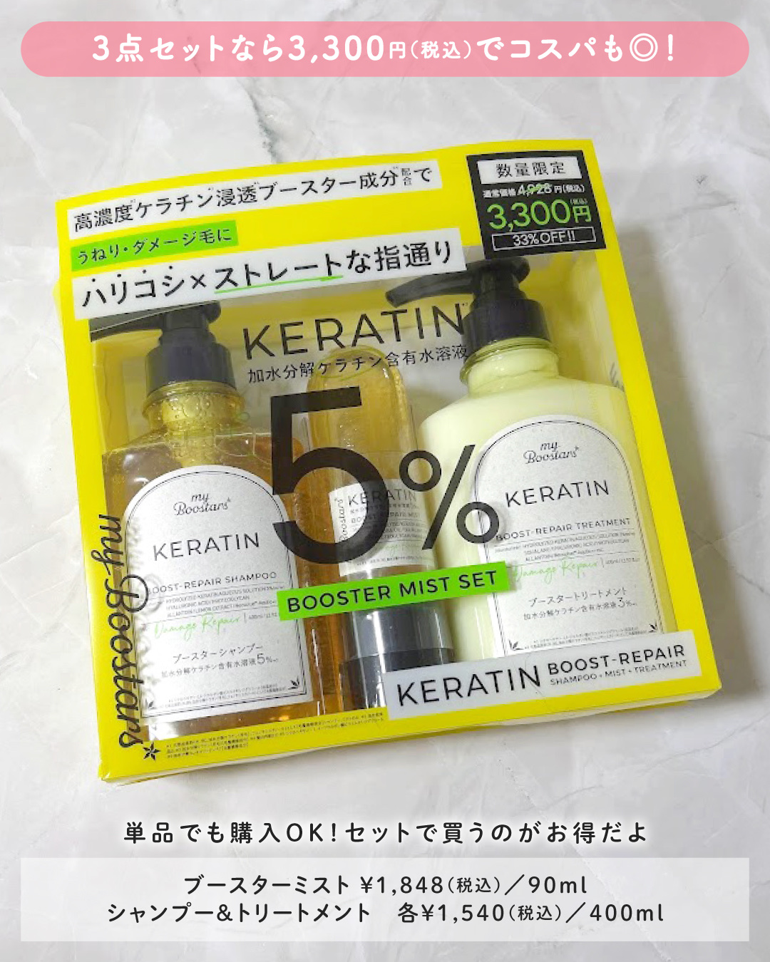 商品詳細情報マイブースターズ ケラチン ブースター [ダメージリペア] 3点セット シトラスサボンの香り