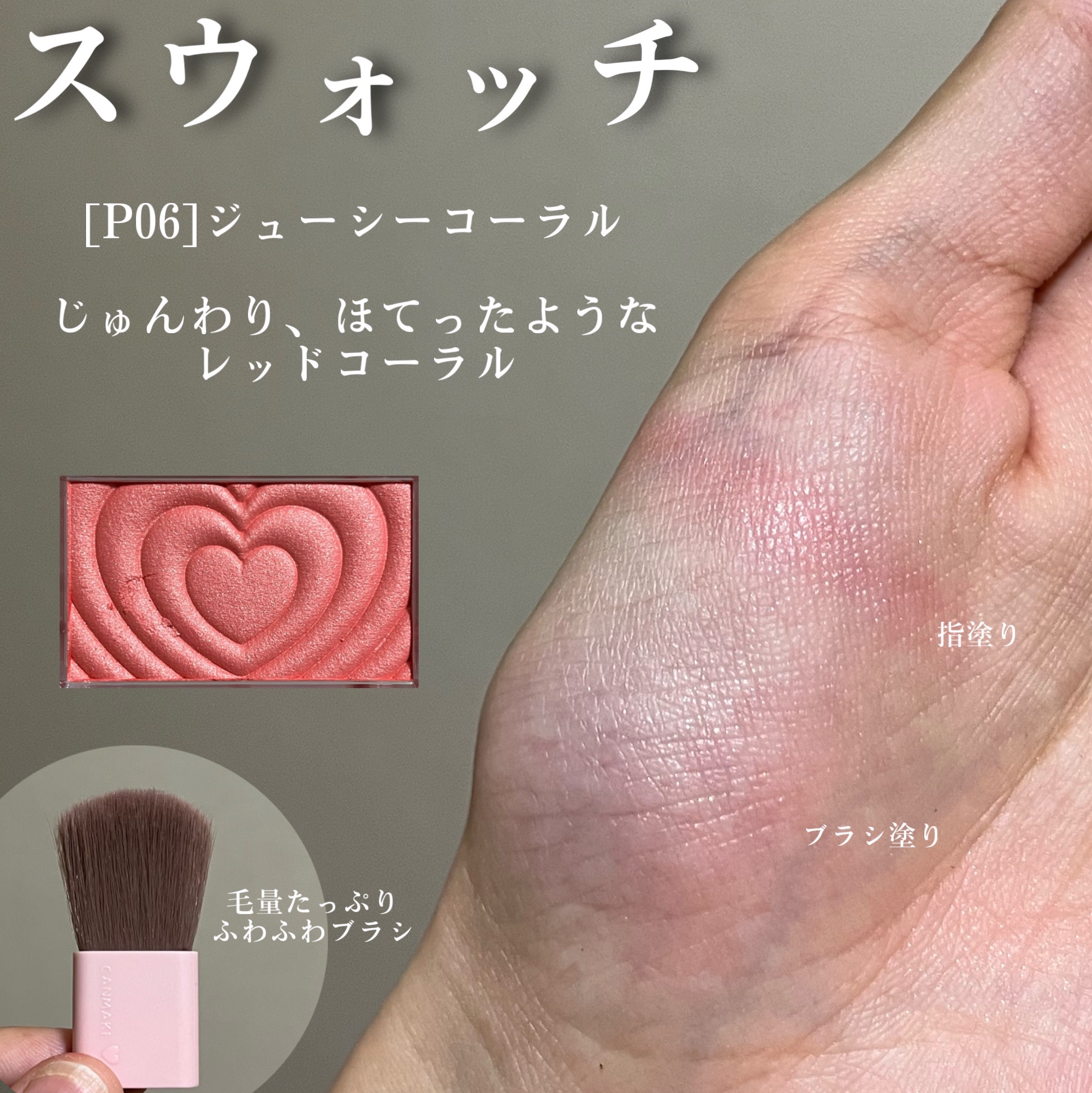 - 生まれ変わった、新・パウダーチークス! クリアな発色でしっとり溶け込むようなツヤ感単色チーク♡ 1.デザインがさらに可愛く♡ 使うたびにキュンとしちゃうハートデザイン♪ 2. 中身がもっと魅力的に ・しっとり感UP!※ ムラになりにくいクリアな発色 ・パール感がさらに繊細に!※ 溶け込むような自然なツヤ感です♪ 3. ブラシの毛量UP※ 広範囲に広げやすいふんわりブラシに進化! ※当社従来品比