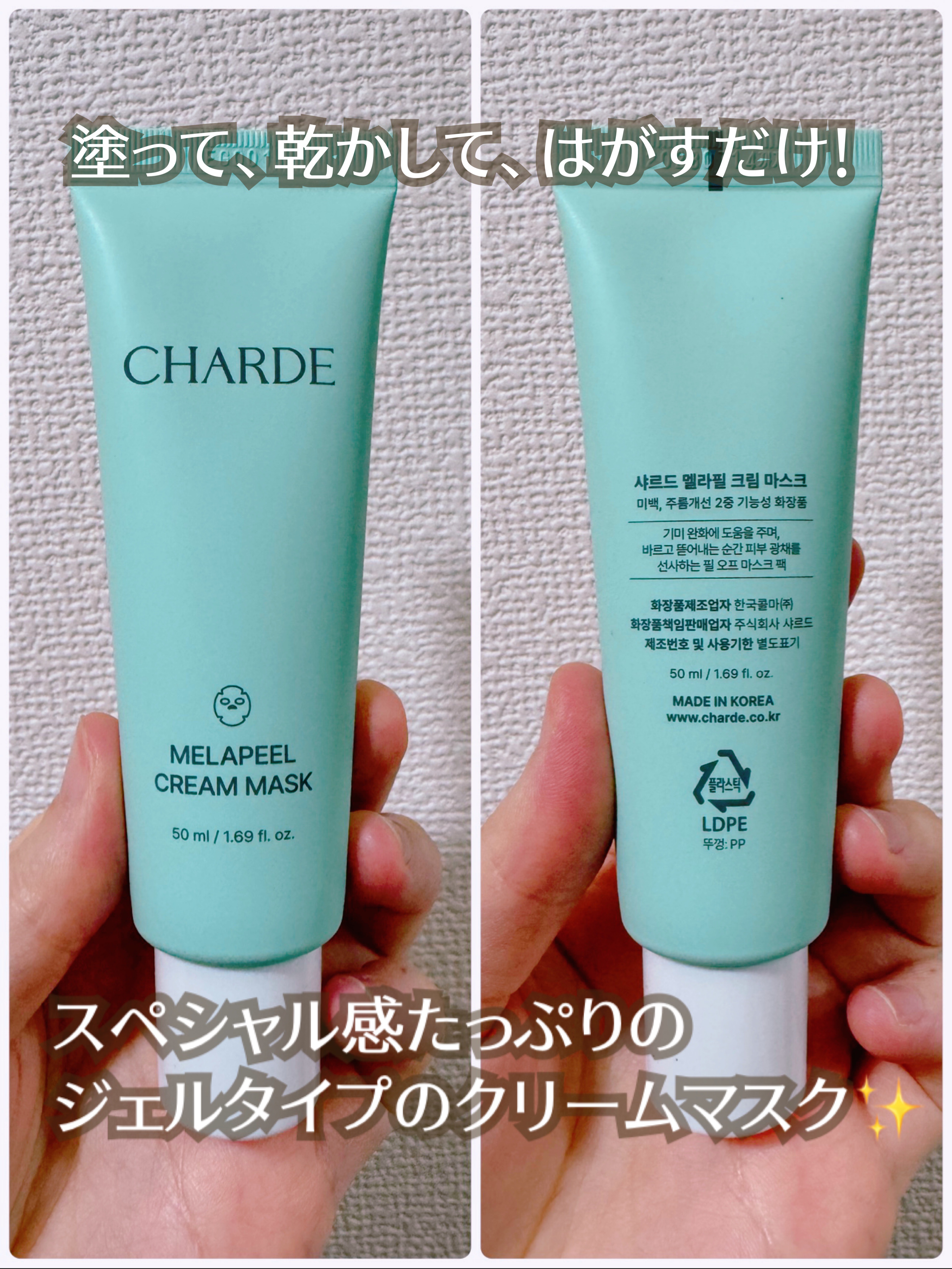 CHARDE(シャルド)のメラピールクリームマスク💗塗って乾かして、はがすクリームマスク❣️手軽で、使い心地が良くて好き☺️🫶🏼アルブチンやグルタチオン、ナイアシンアミド、ビタミンC、レチノール配合。うるおいを角質層まで届けながらメラニンによ...