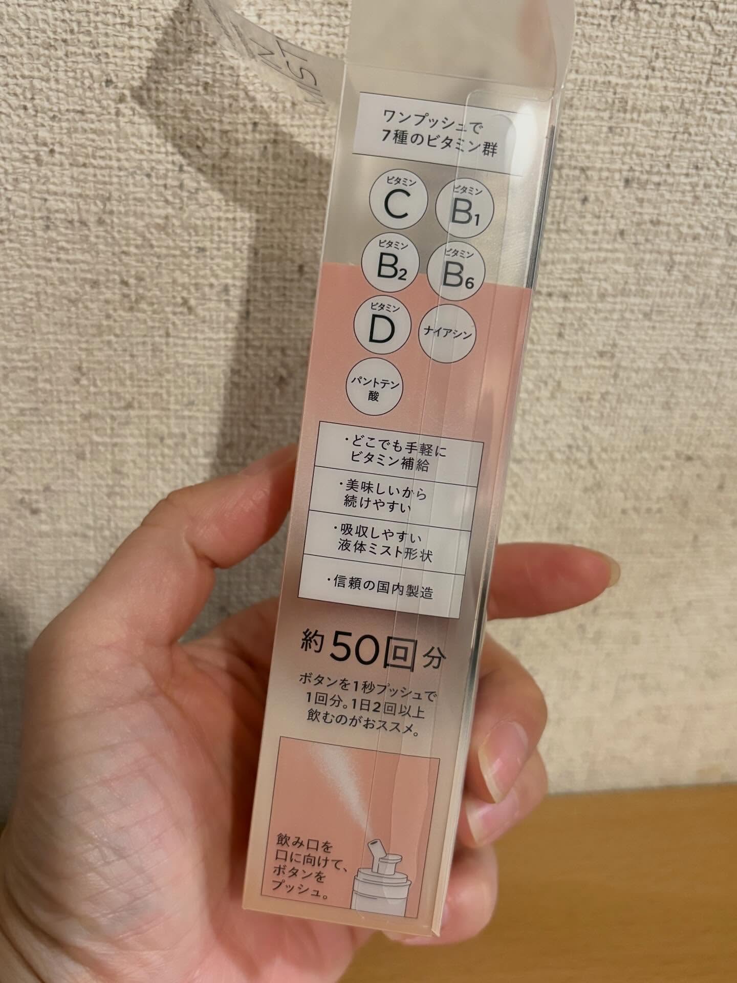 - ワンプッシュの美容ルーティン こまめなビタミン補給が、キレイの秘訣。 IN MISTは、ミストという独自の形でこの課題に対処しました。 水も不要、外出先でも美味しくワンプッシュ。液体ミストですぐに補給。独自開発の2重構造ボトルで常に高品質のまま届けます。 ◆Vitamin Maintenance とは ワンプッシュ1mlで7種のビタミンが美味しく補給できるミストサプリメント(トロピカルフルーツテイスト) 7種のビタミン ビタミンB1/ビタミンB2/ビタミンB6/ナイアシン/パントテン酸/ビタミンC/ビタミンD ◆使い方 STEP.01 容器のフタを開ける STEP.02 ノズルを口に向けてワンプッシュ 1本で約25日間を目安にお使いいただけます。(目安量1日2回プッシュの場合) ※使用回数や噴射時間によって個人差があります ◆Vitamin Maintenance の特徴 1.こまめなビタミン補給が、キレイの秘訣。 ビタミンは数時間で体外に排出されるため、本当に大切なのは“こまめな補給”。 IN MISTなら水も不要で、どこでも美味しくワンプッシュ。持ち運びもしやすいから、外出先でも。しかも液体ミストだからスムーズに届きます。 2.独自開発の2重構造ボトルで高品質なビタミンを ビタミンは光や空気に弱いデリケートな成分。そんなビタミンを守るため、IN MISTは徹底的にこだわりました。 独自開発のアルミ2重構造ボトル“フレッシュキープボトル”で、ビタミンを徹底ガード。 最後のワンプッシュまで、高品質なビタミンをお届けします。 3.誰もが続けやすいサプリ体験 サプリメントで最も大切なのは「継続すること」。 ワンプッシュの手軽さと、独自の創味技術で仕上げた美味しさで、誰でも自然に続けられるサプリ習慣で内側から美しさを。