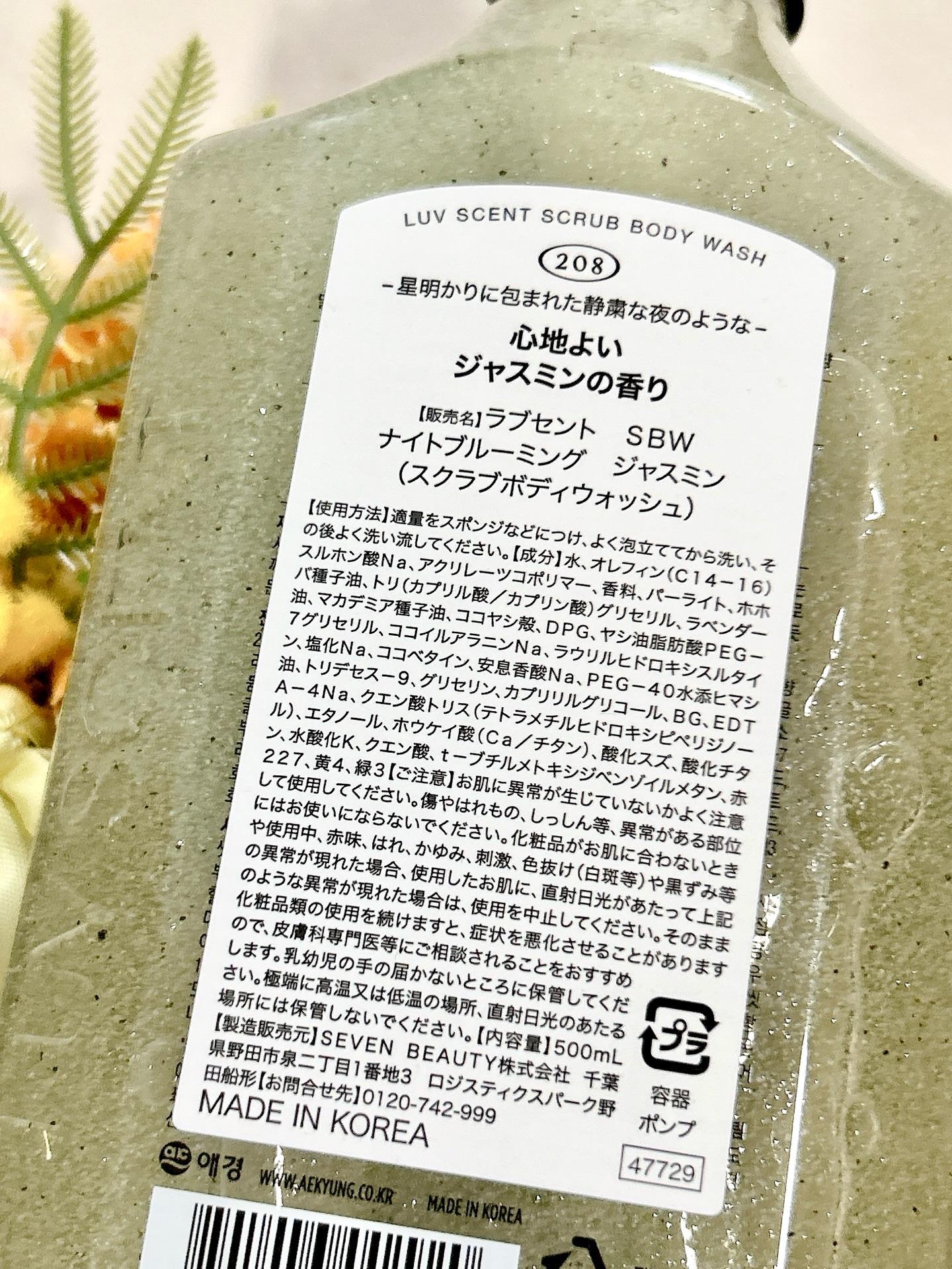 ☆LUVSCENT スクラブボディウォッシュ ナイトブルーミングジャスミン韓国初のスクラブボディウォッシュ(ラブセント)から新しい香りが登場!ナイトブルーミングジャスミン:夜空いっぱいに広がる月明かりに包まれた静粛な夜を思わせる、心地良いジャ...
