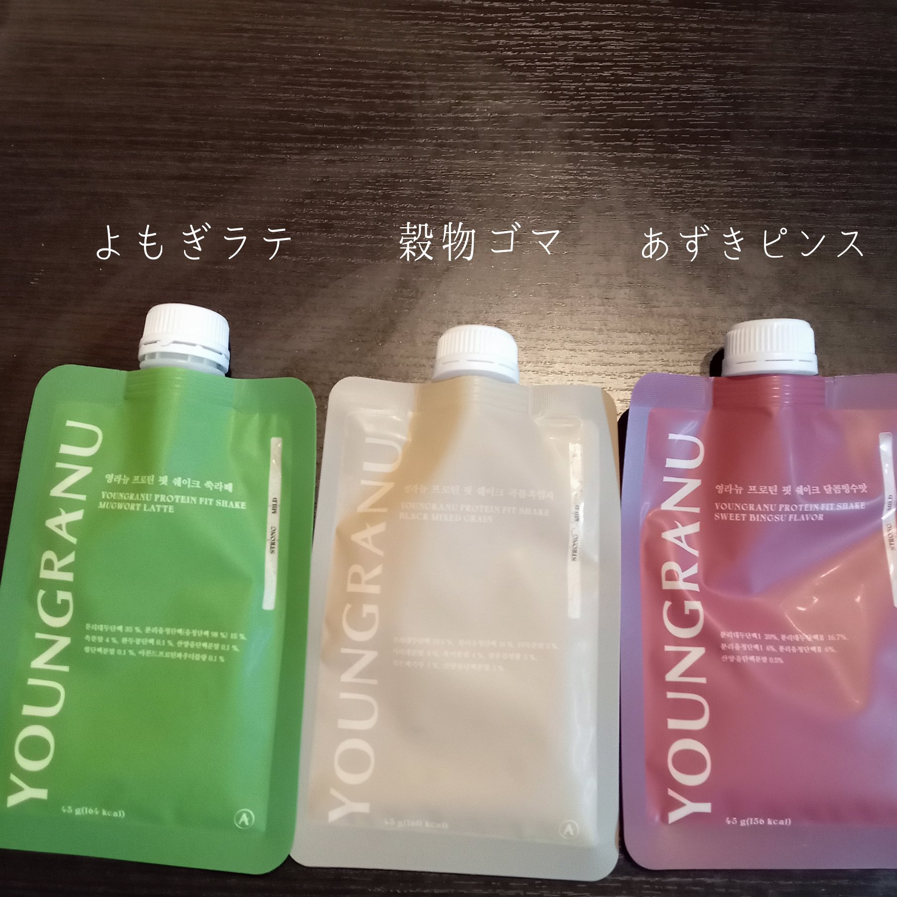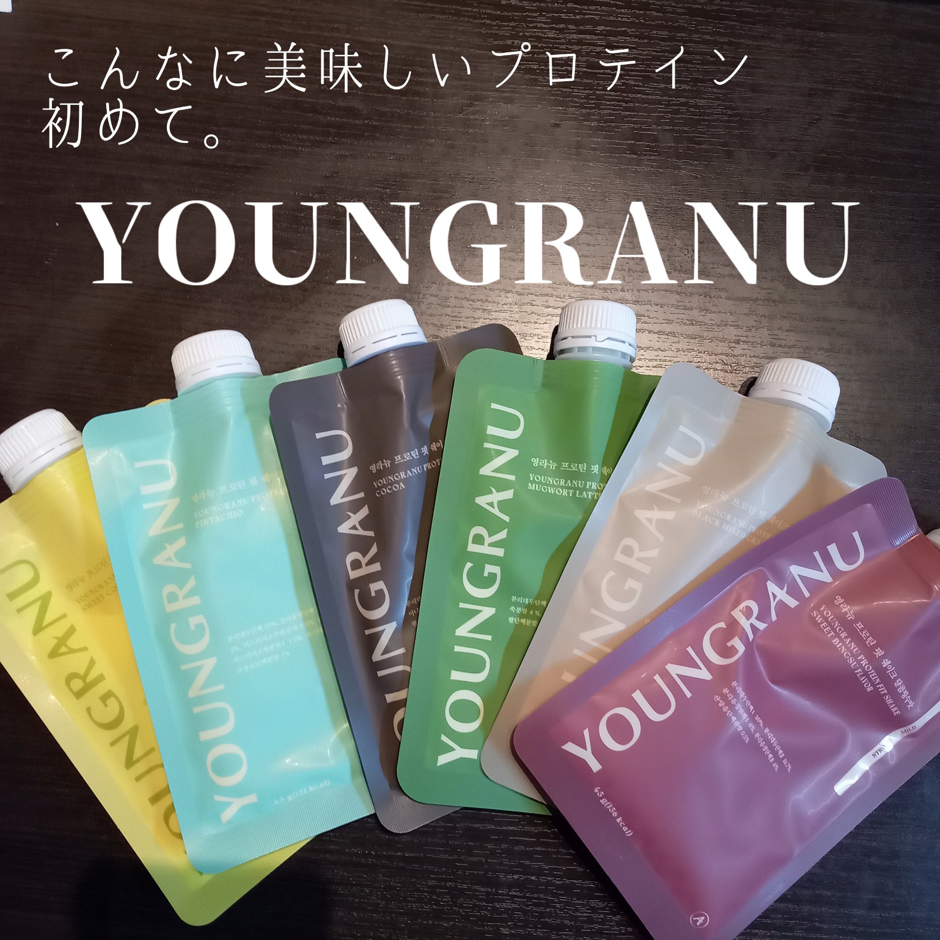 ・ YOUNGRANUプロテインフィットシェイクあずきピンススイートコーンヨモギラテピスタチオ穀物黒ゴマココアの全6種類1包約20gのタンパク質とたくさんの栄養素を補ってくれる珍しいフレーバーが揃ってるのも置き換えダイエットにもぴったりな満足...