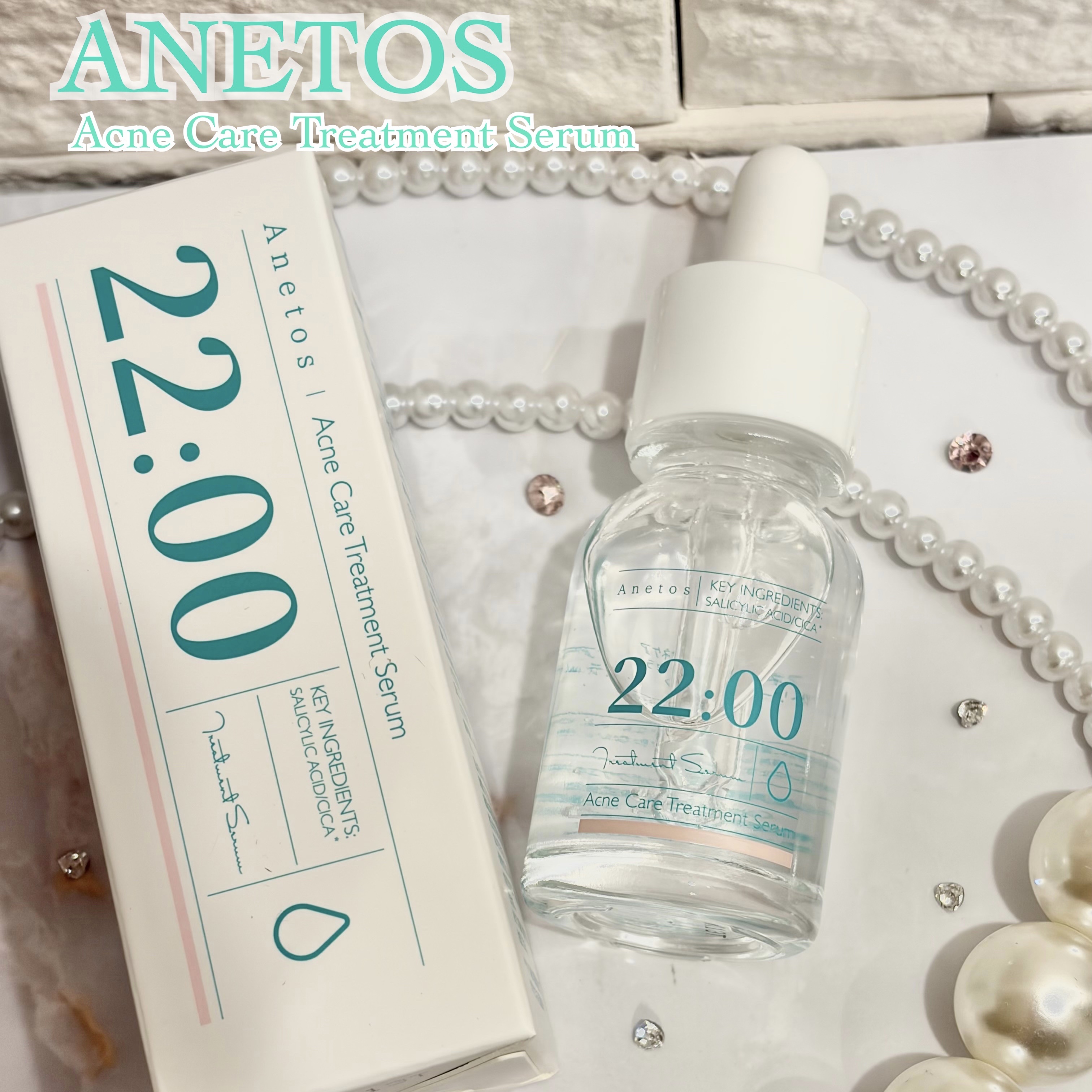22:00、肌の一番の時間。皮脂やニキビが気になる肌におすすめの美容液✨アネトスアクネケアトリートメントセラム☺・肌のコンディションを整えるビフィズス菌培養溶解質×サッカロミセス培養溶解質液・肌荒れや毛穴づまりをケアシメン-5-オール×サリチ...