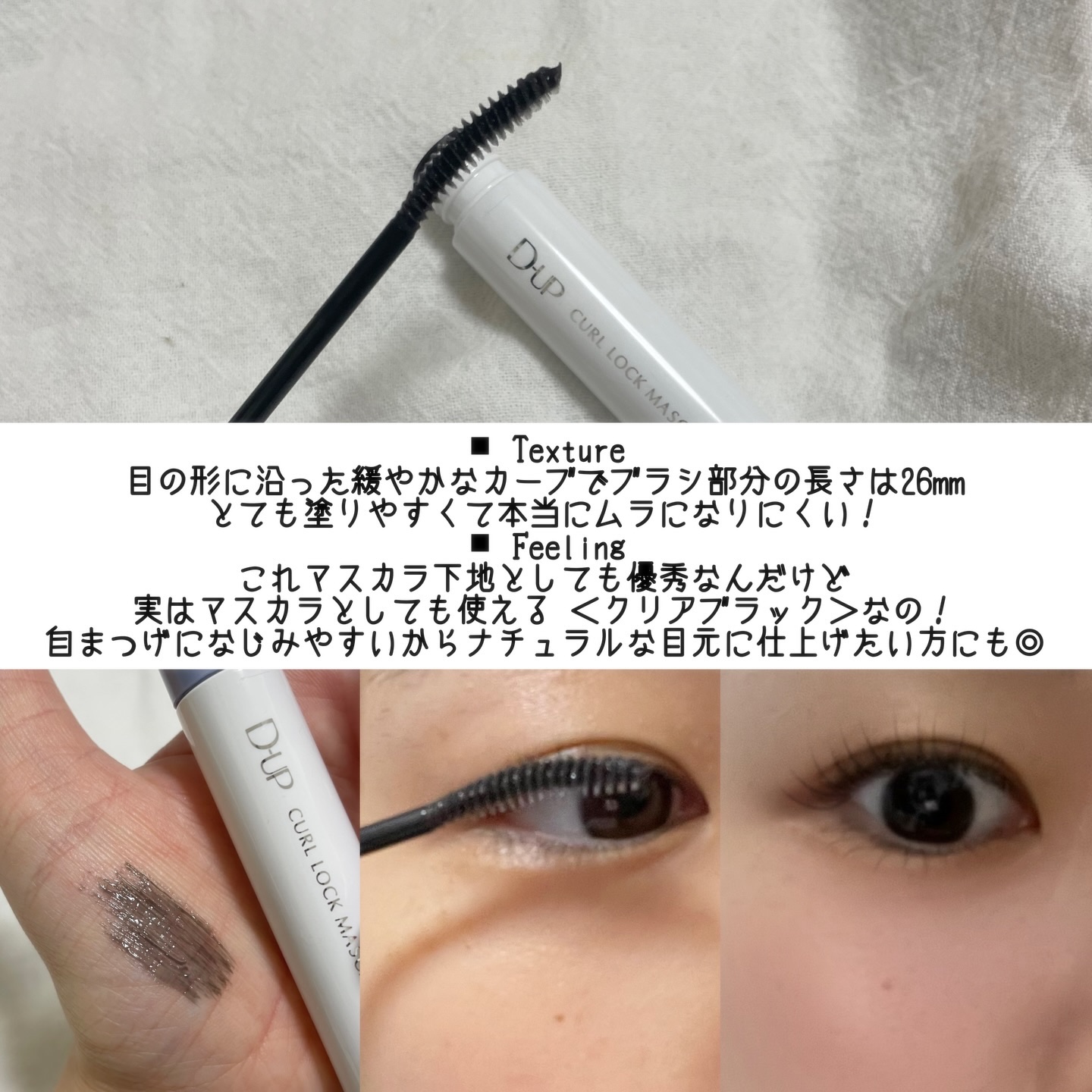 カラバリ豊富で綺麗なまつげに仕上げてくれる マスカラのイメージが強いD-UPからカールロックのマスカラ下地が登場! そんな私にとっては〝待っていました!〟というアイテム!カールロックマスカラ下地! ダマになりにくく、パーフェクトエクステンションマスカラの良さをさらに引き立ててくれるマスカラ下地でした💗