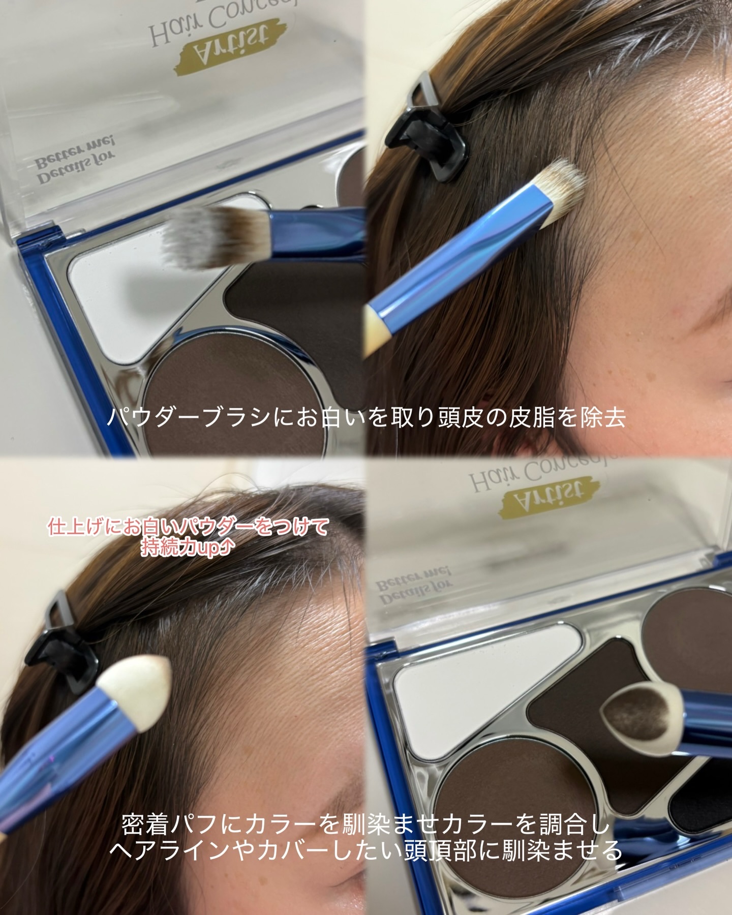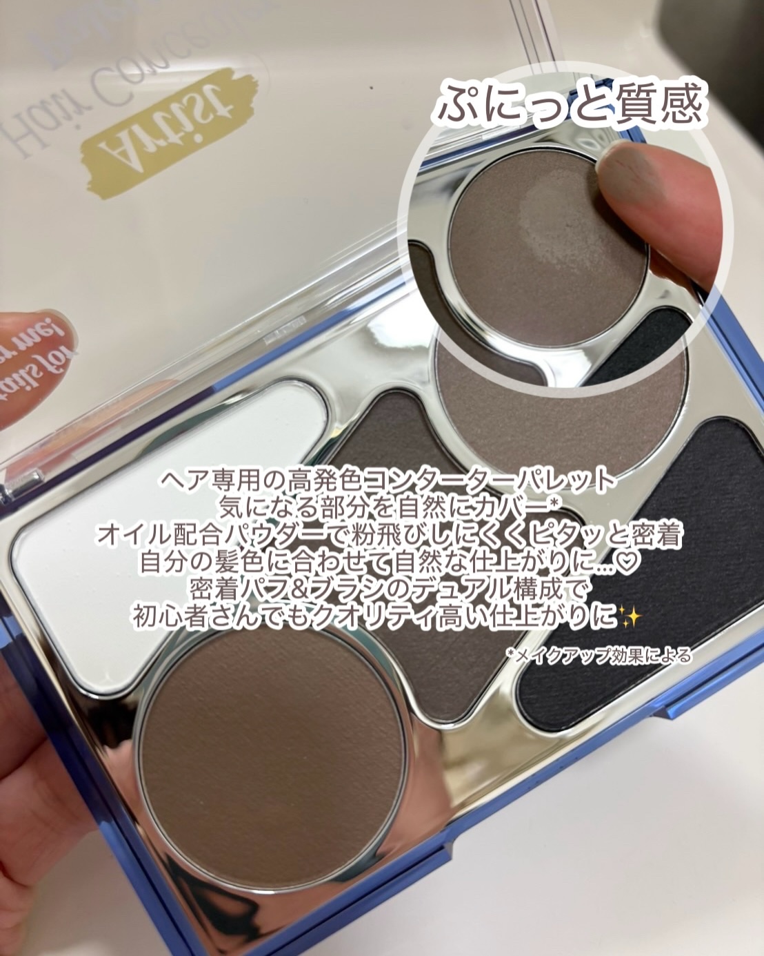 新感覚ヘアコンシーラーオーディッドアーティストラインアーティストヘアコンシーラーパレット&アーティストデュアルブラシ使ってみた♥️ヘア専用の高発色コンシーラーパレットで気になる部分を自然にカバー。オイル配合パウダーで粉飛びしにくく、頭皮にしっ...