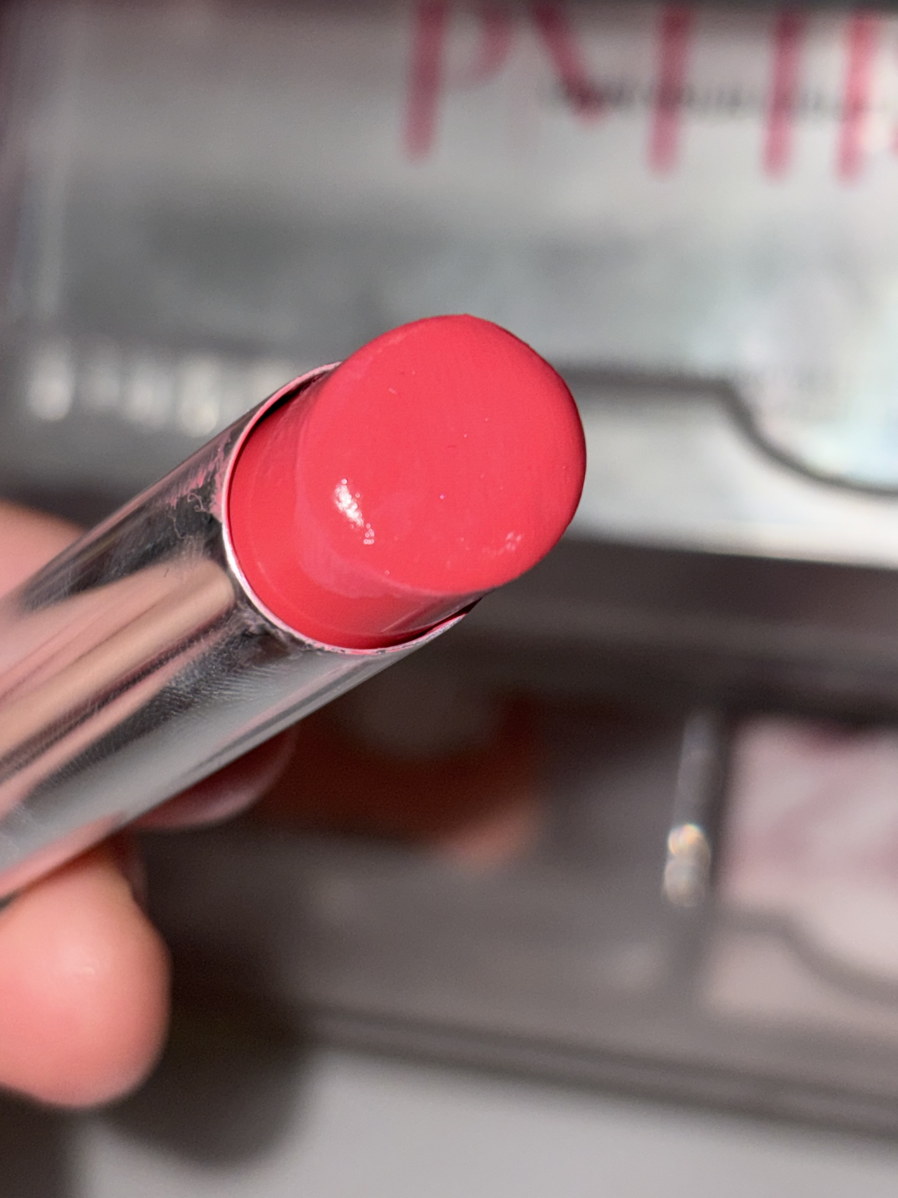チャイティーピンクはくすみのあるヌードピンクで、ライトありだとほんのりくすみのあるヌードなピンクカラーで、素の唇をしっかり明るく可愛くしてくれます! みずみずしさを感じるツヤ感とグロスでしかだせないぽってり感が両立してるんです!!感動! 歯にめちゃくちゃ付きます!ここめちゃくちゃ辛い…