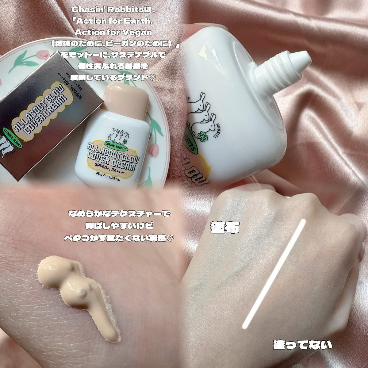 CHASIN’RABBITS-チェイシングラビッツ-『ALLABOUTGLOWCOVERCREAM』をお試ししました☺️うさぎさんがキャラのデザインが好きで機能的なスキンケアやコスメが多いので個人的に注目しているブランド様のカバー力もあってツ...