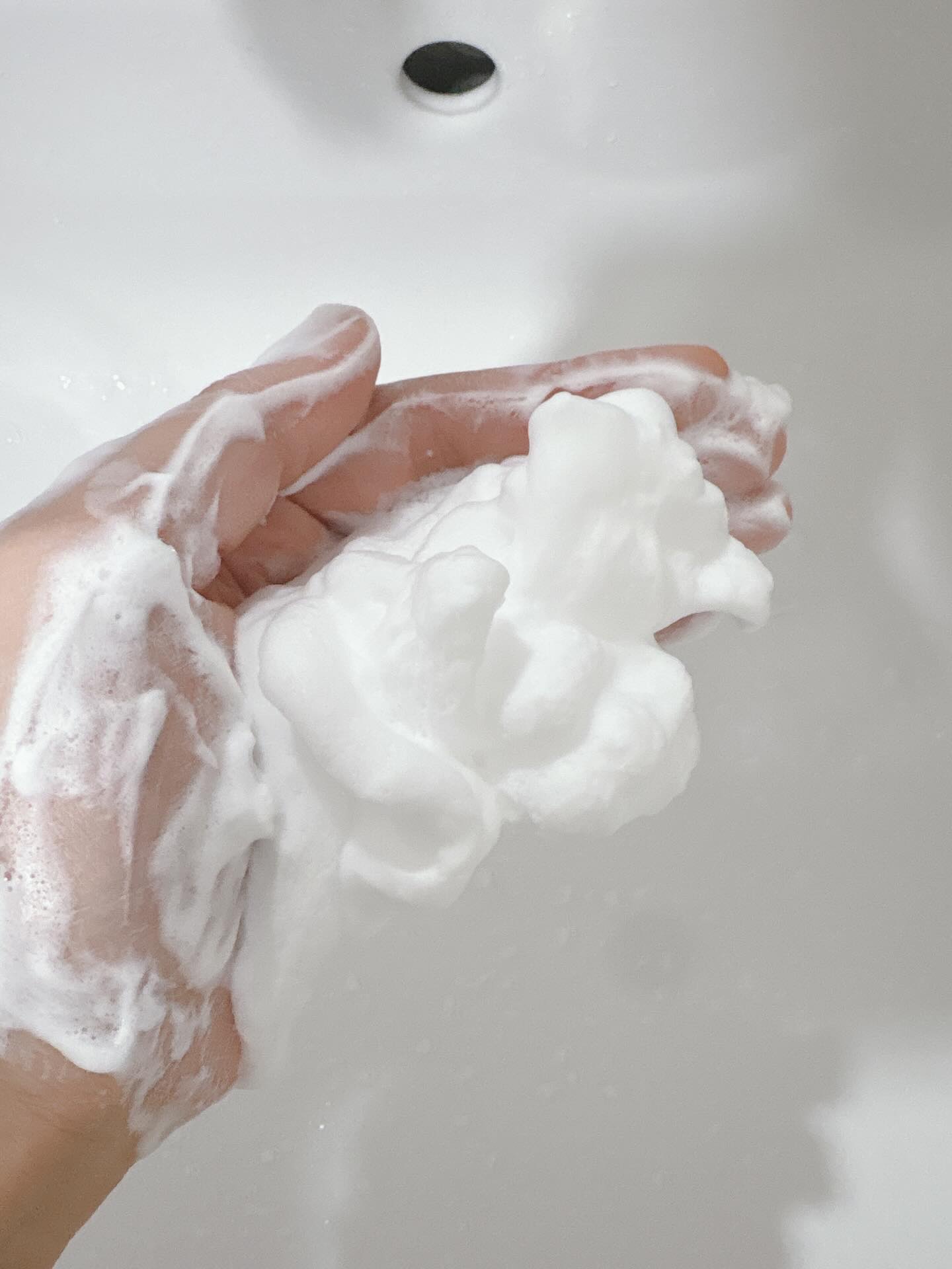 ポンプから出る泡は濃密で、普段洗顔のために自分で泡立てるものよりもふわふわ🫧 これならほとんど擦らずにメイク落としをすることができます🫧 香りはフローラルでいい香り💐