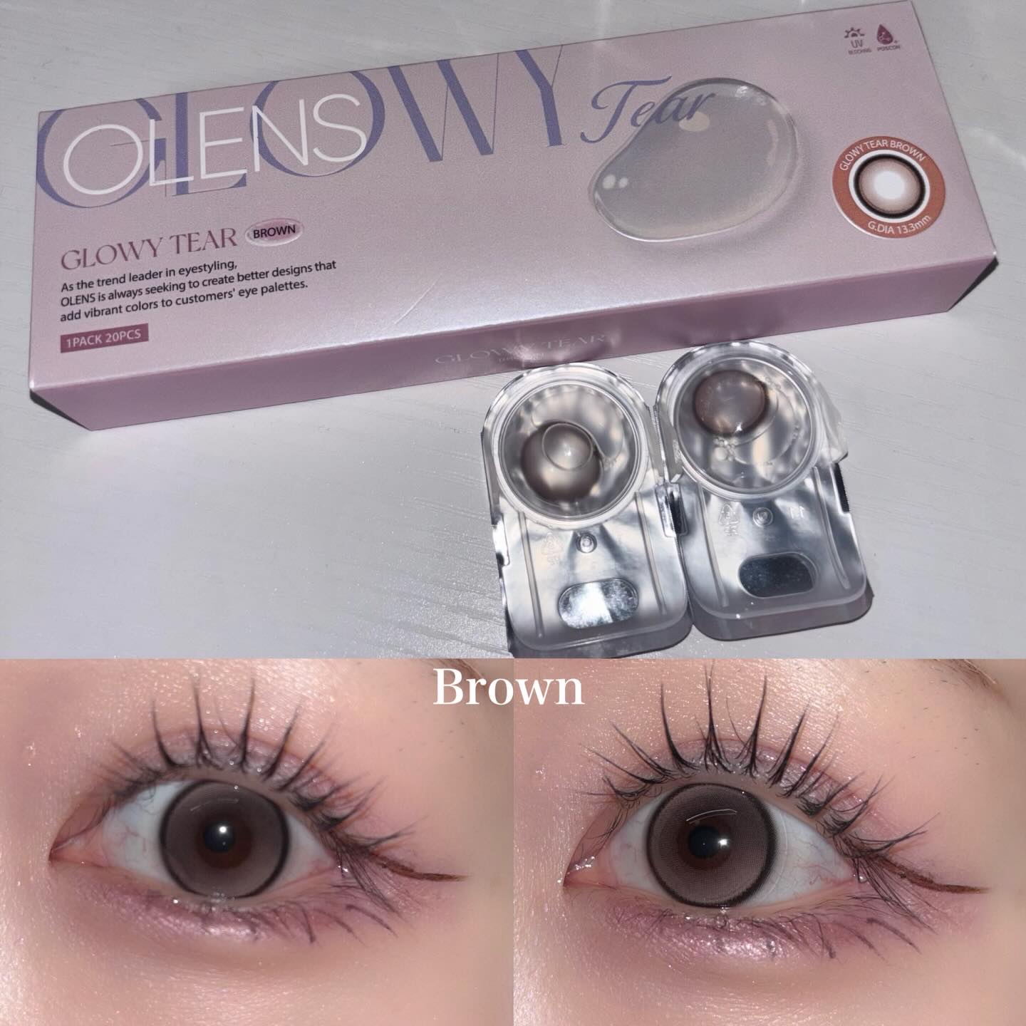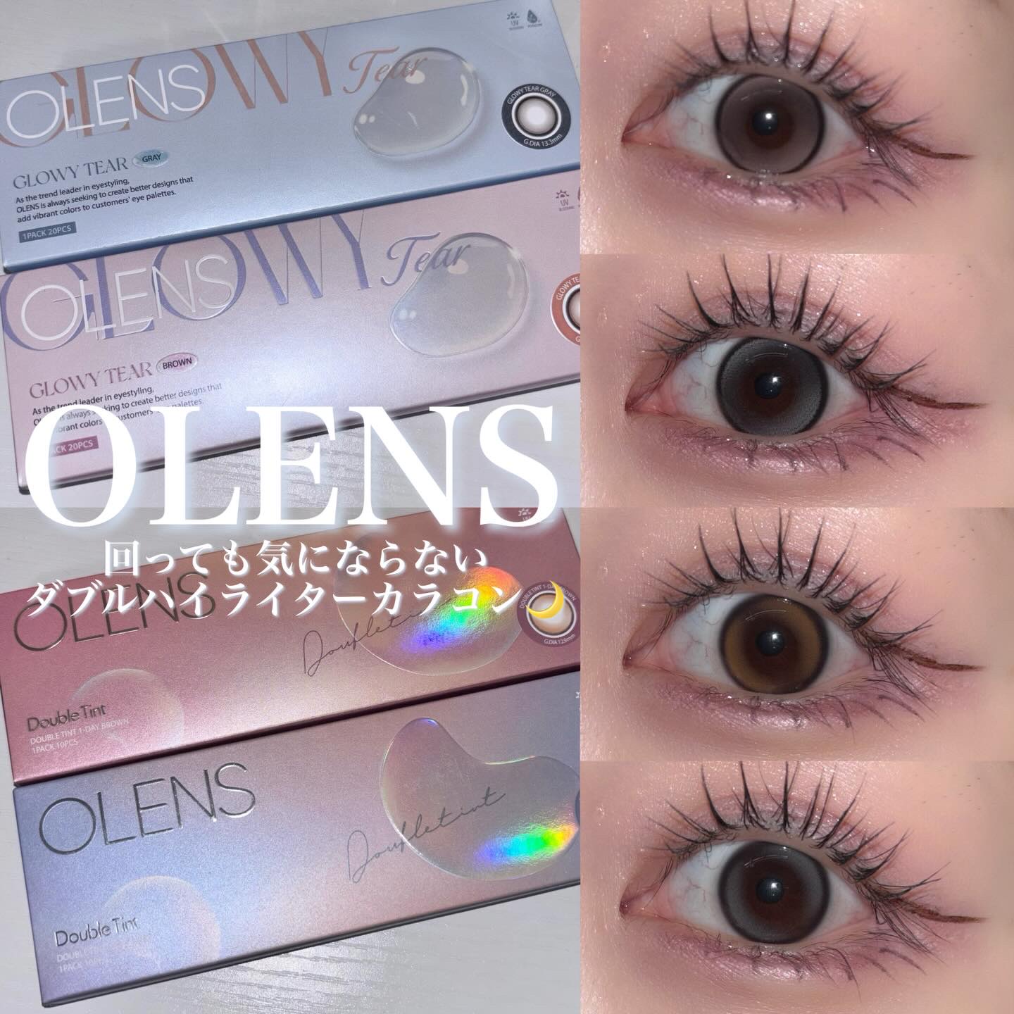 まわっても気にならないダブルハイライターカラコン4選比較したよ!私は、GlowyTearBrownがお気に入り👍🏻・GlowyTearBrown・GlowyTearGray📝うるぷる×ツヤの水光カラコン。 着色直径13.3mmでちゃんと盛れる...
