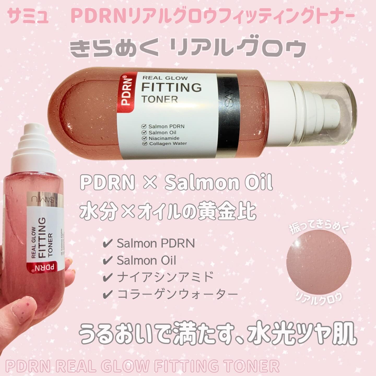 \内側から溢れるようなツヤ肌へ/ ▫️SAM'Uサミュ PDRNリアルグロウフィッティングトナーリポーソーム化したサーモン由来PDRN×サーモンオイルを配合肌本来のツヤを引き出す、ミストタイプの化粧水サジー水・7種のヒアルロ...