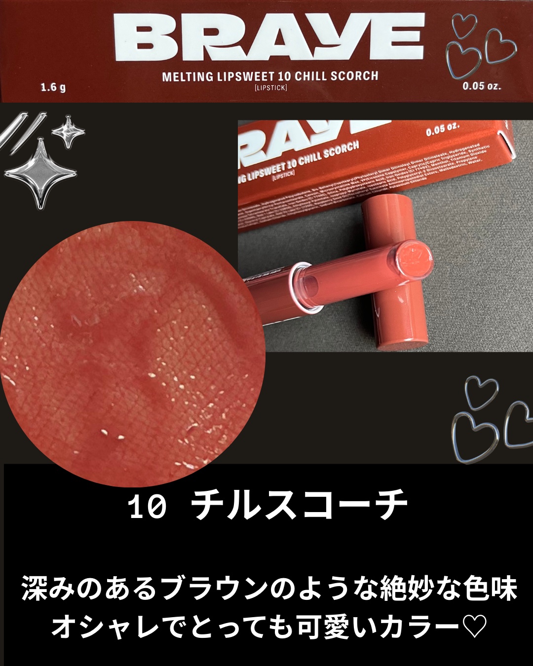 どこから見てもまぶしい、とろける生ツヤ。鮮明な光沢のボリュームリップでスキンケア成分で潤うツヤリップです!!パーソナルカラーに合わせて選べる10色展開✨ブレイメルティングリップスイートはPEG無添加、PETAビーガン認証で敏感肌にも安心して使...