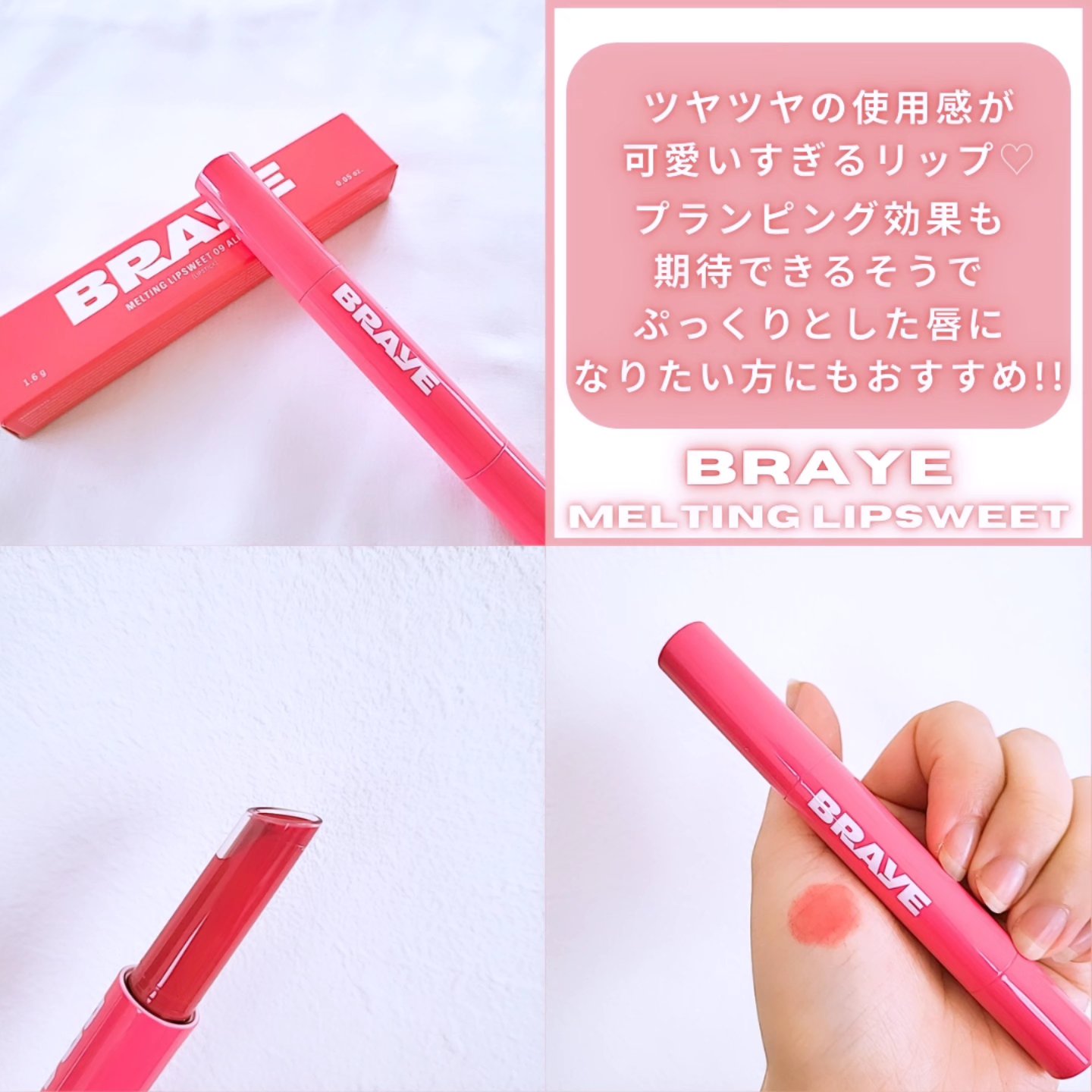 【BRAYE】▼メルティングリールスゥィート𖧷01/BARELY𖧷08/FOGPINK𖧷09/ALLURING・・最近お気に入りのリップを紹介させてね♡BRAYEの“メルティングリールスゥィート“テクスチャーは、💋に触れた瞬間…とろけるように...