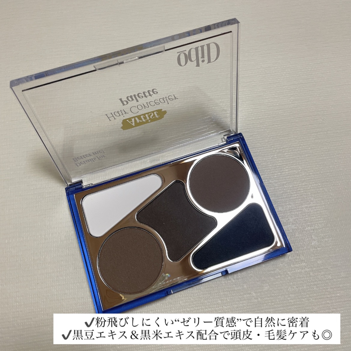 最近のヘアライン悩みに🪄 odiDヘアコンシーラーパレット&デュアルブラシを使ってみたよ。使い方は、 パウダーブラシでおしろいをのせて頭皮の油分をオフ→ 密着パフでカラーをなじませながら調合→ 気になる生え際や頭頂部にポンポンするだけ◎4色入...