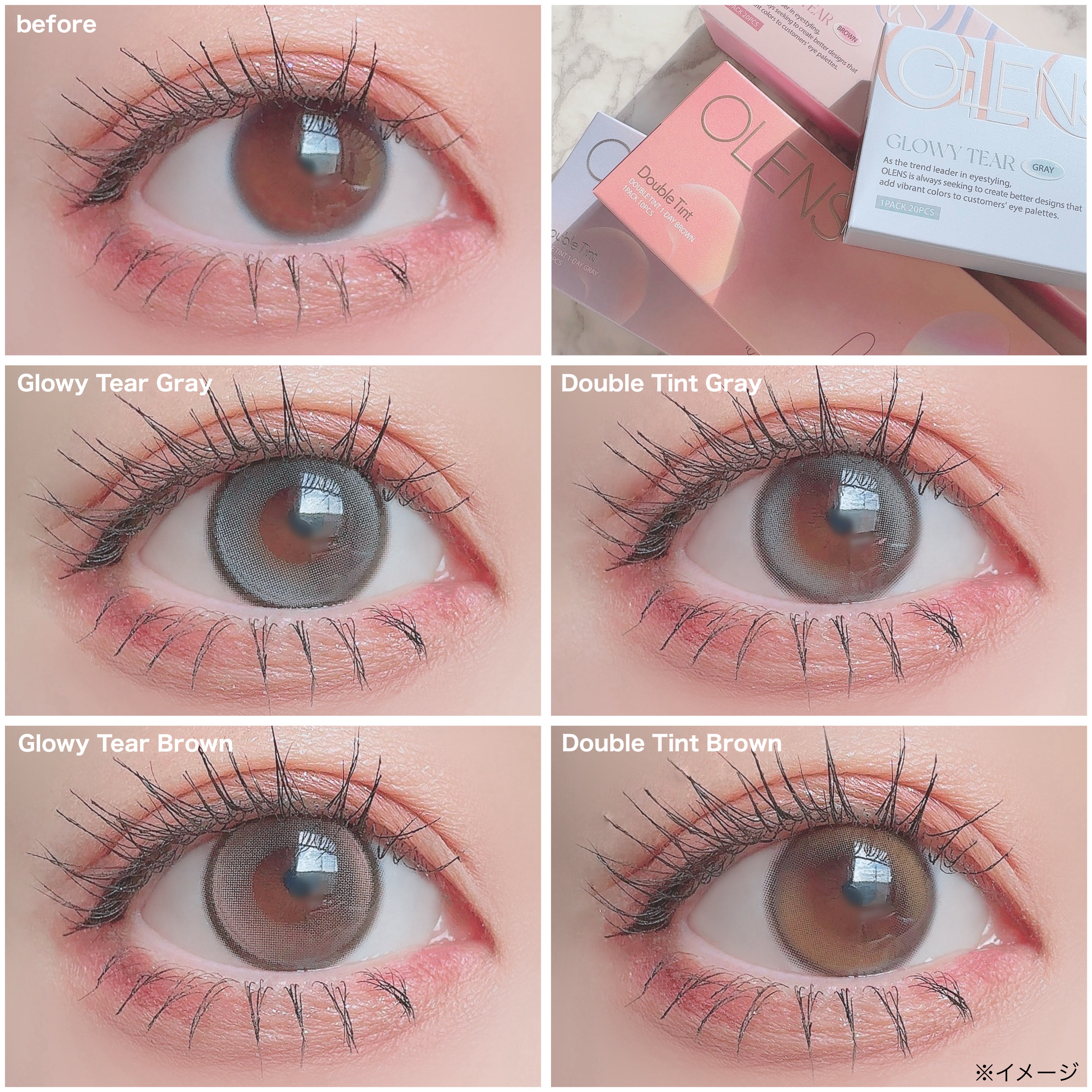 \ちゅるんと見える、水光レンズ🫧/☁️OLENS🛒DoubleTint1dayGRAY/BROWN📍DIA:14.2mm📍BC:8.6mm📍着色直径:12.9mm透明感たっぷりのダブルハイライター。ハイライターレンズって、目の中で回って左右非...