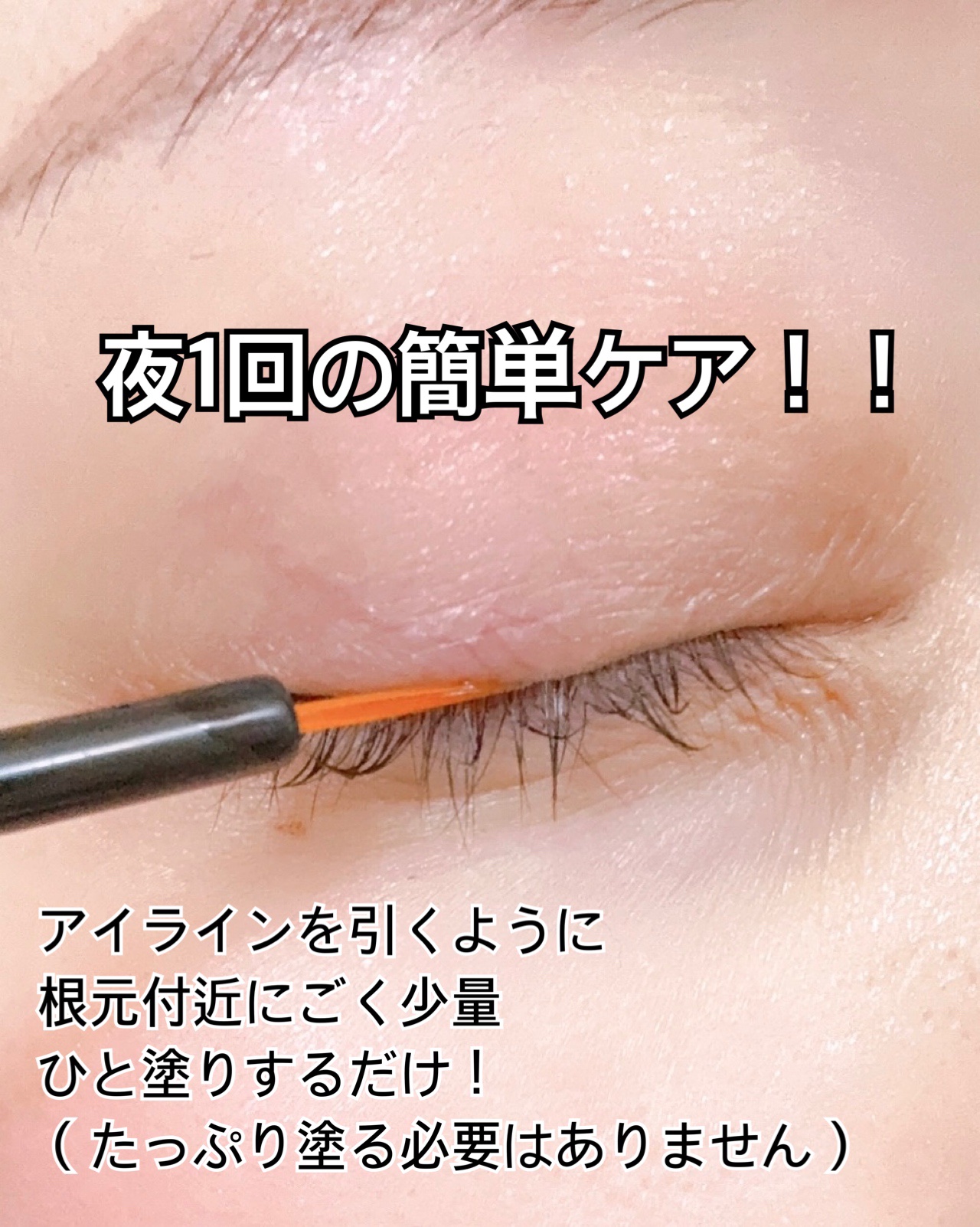まつ毛の根本にまっすぐアプローチ。 ナノペプチドを中心とした成分がまつ毛を健やかに導くようにサポートしてくれるんだって。 ごく少量をまつ毛の根元付近にアイラインを引くようにひと塗り。極細筆でピンポイントでまつ毛の根元を狙え塗りやすいです。 まつエク、まつ毛パーマをしている方も使えます。