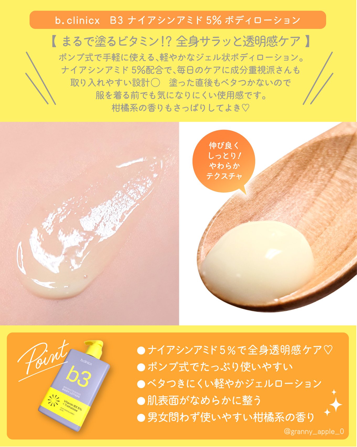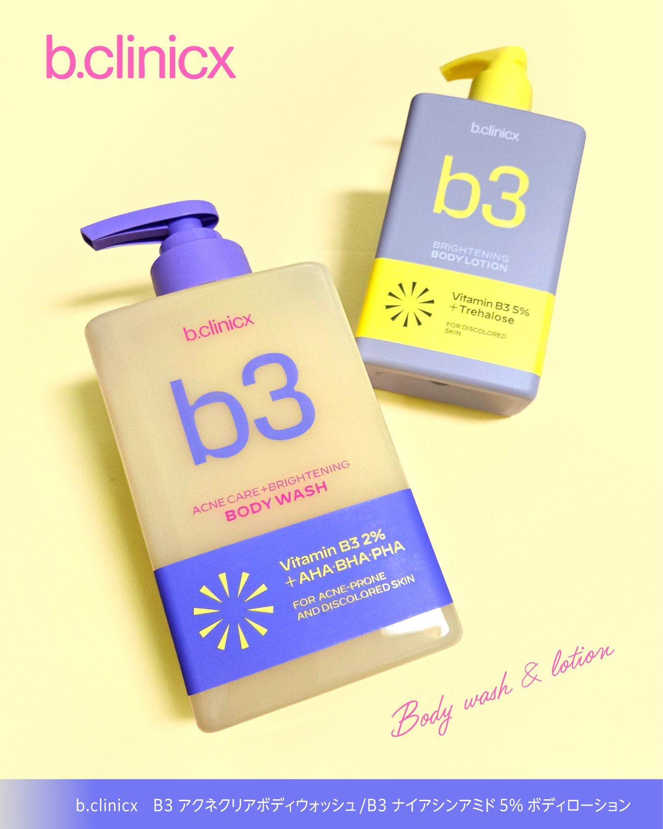 #PRb.clinicxナイアシンアミド5%ボディローションB3アクネクリアボディウォッシュポップなパケで楽しくボディケア🤍🫧✔ボディローションボディもツヤツヤの明るい印象へ✨ナイアシンアミド、トレハロース、ビタミンC誘導体カプセル™な...