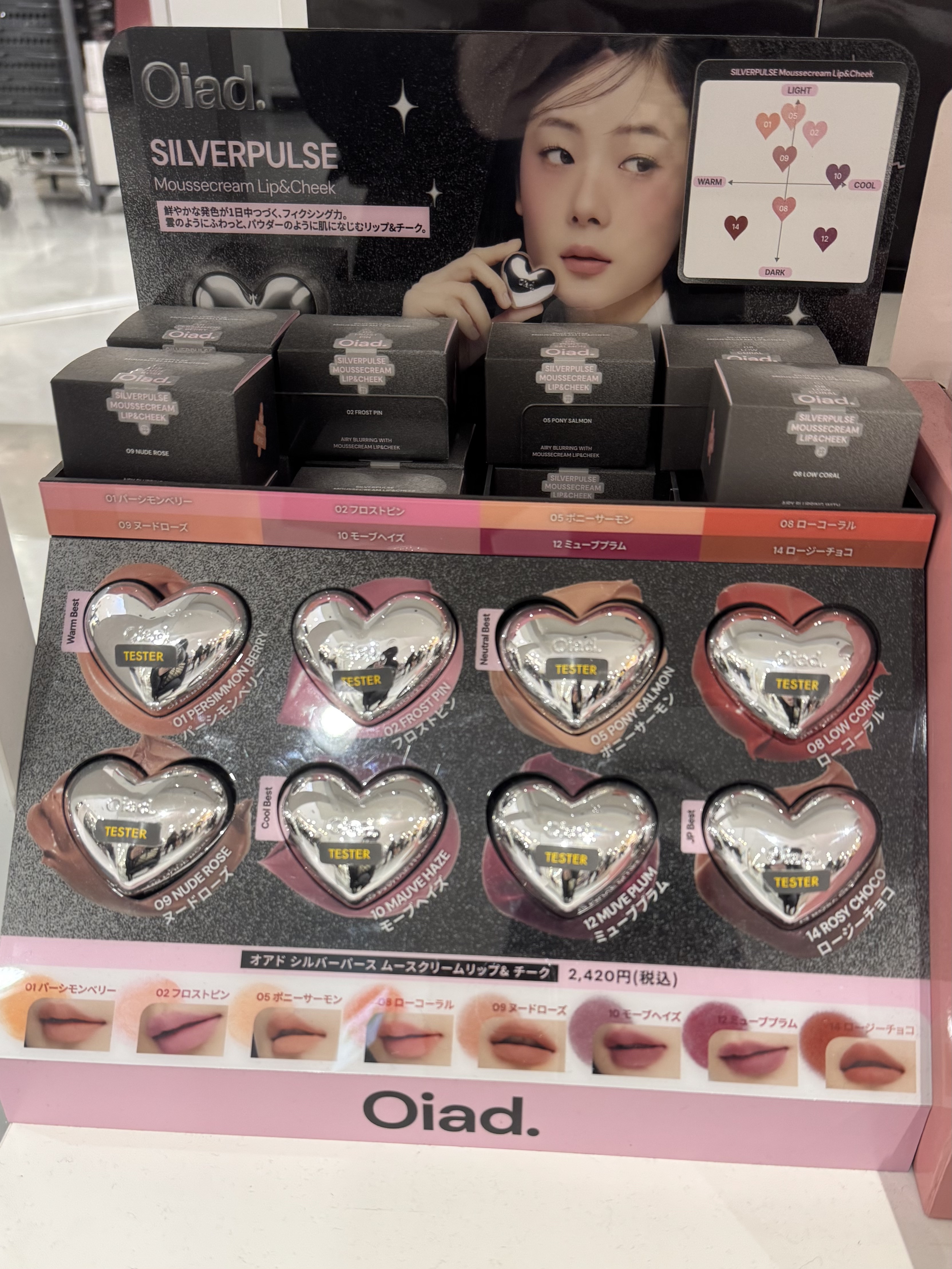 Oiadが全国のLOFT・PLAZA・アットコスメストアの店舗に登場✨気になっていたシルバーパースリップ&チーク14をPLAZAでゲットしてきました💓雲のようにふんわりなめらかなテクスチャーで自然にブラーリングしてくれます🫧話題のリップティー...