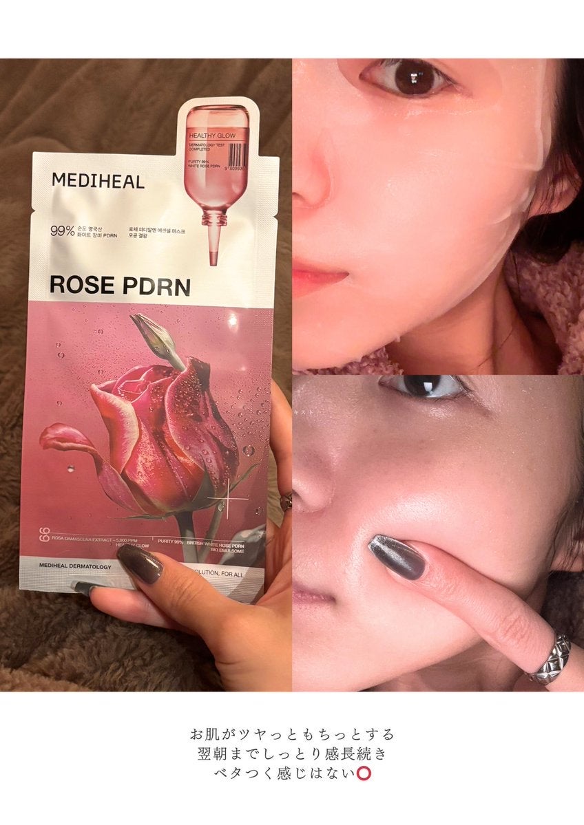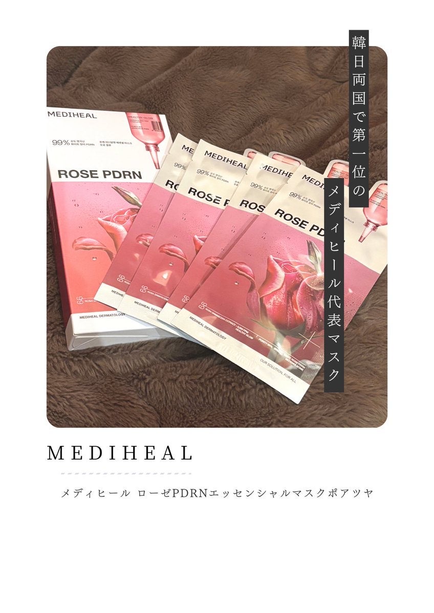 MEDIHEALローズPDRNエッセンシャルマスクポアツヤメディヒールのパックは貼りやすい密着力のあるシートで肌が喜んでる〜ってくらいひたひた🌹 韓日両国で第1位のメディヒール代表マスクで海外でも話題らしい〜✨@mediheal_jp[PR]...