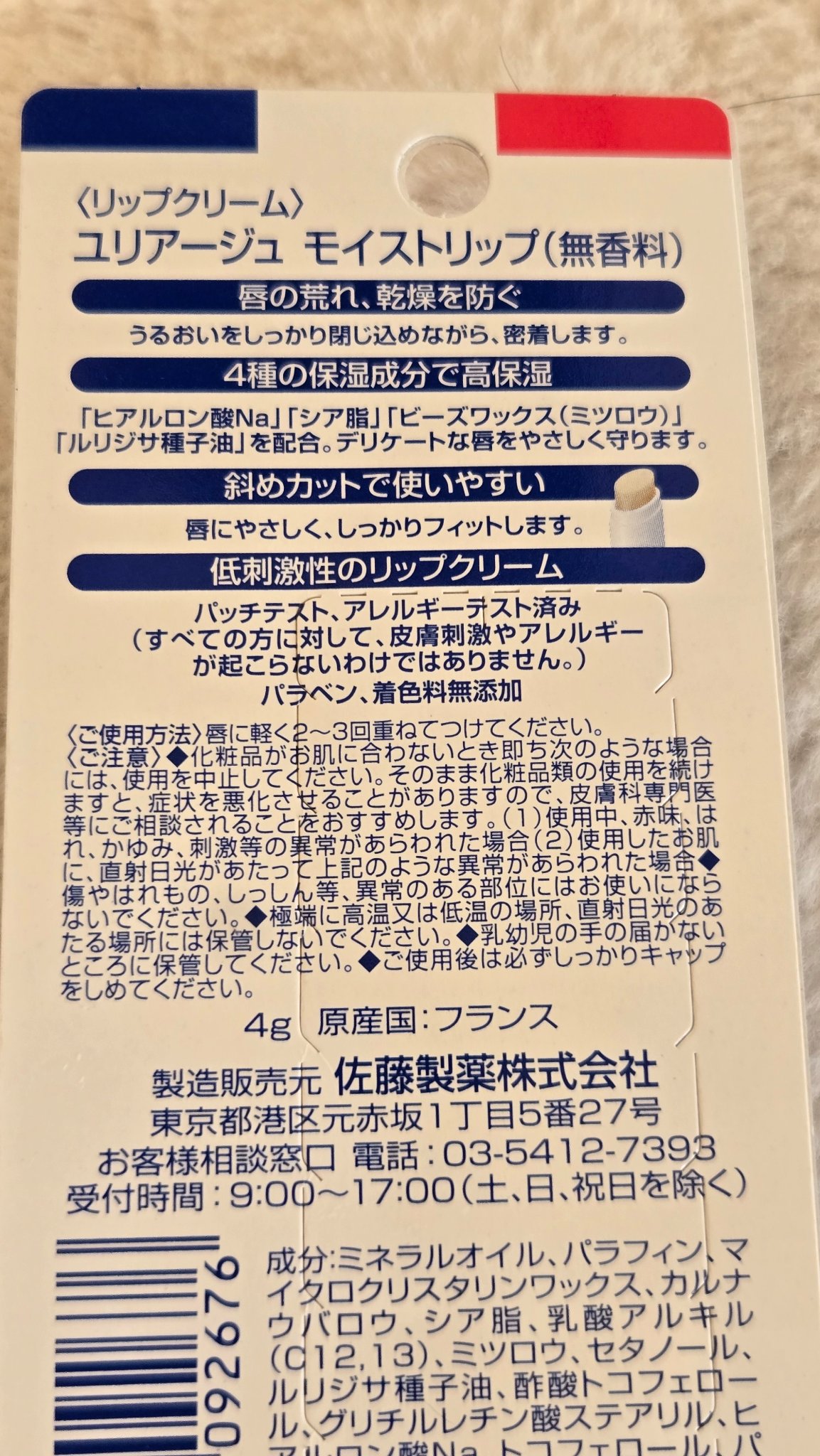 - <モイストリップ(無香料)> ミネラルオイル、パラフィン、マイクロクリスタリンワックス、カルナウバロウ、シア脂、乳酸アルキル(C12,13)、ミツロウ、セタノール、ルリジサ種子油、酢酸トコフェロール、グリチルレチン酸ステアリル、ヒアルロン酸Na、トコフェロール、パルミチン酸アスコルビル、BHT <4g×2本> ミネラルオイル、パラフィン、マイクロクリスタリンワックス、カルナウバロウ、シア脂、乳酸アルキル(C12,13)、ミツロウ、セタノール、ルリジサ種子油、酢酸トコフェロール、グリチルレチン酸ステアリル、ヒアルロン酸Na、トコフェロール、パルミチン酸アスコルビル、BHT