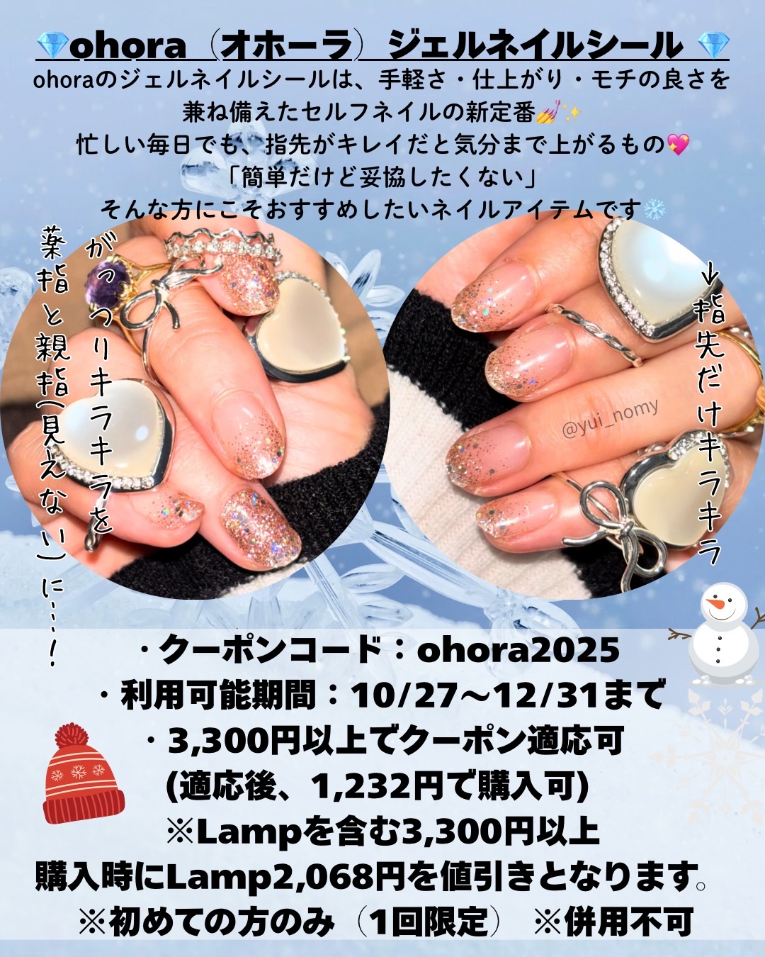 【ohora(オホーラ)】ND-053-JNCreamShellPD-025-JPWavyCremaGelLamp自宅で1人で簡単にハンドからフットネイルまで!!貼ってかためるだけで完成するサロン級仕上がりのネイルシール💅💕好きなデザインを選...