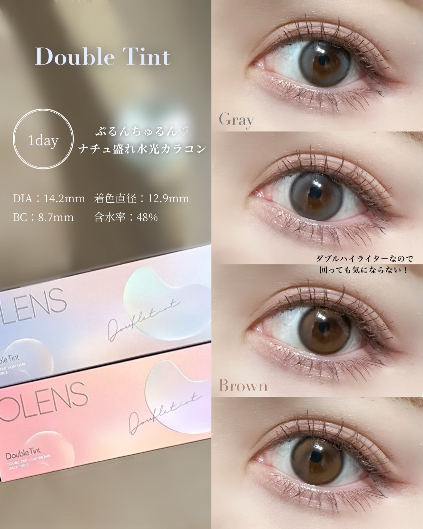 \回っても気にならない/OLENSのダブルハイライターカラコン🫧OLENSGlowyTear1DayBrown/GrayDoubleTint1DayBrown/Gray◆GlowyTear1Day上下で太さの違うダブルハイライター。極微細ダブ...