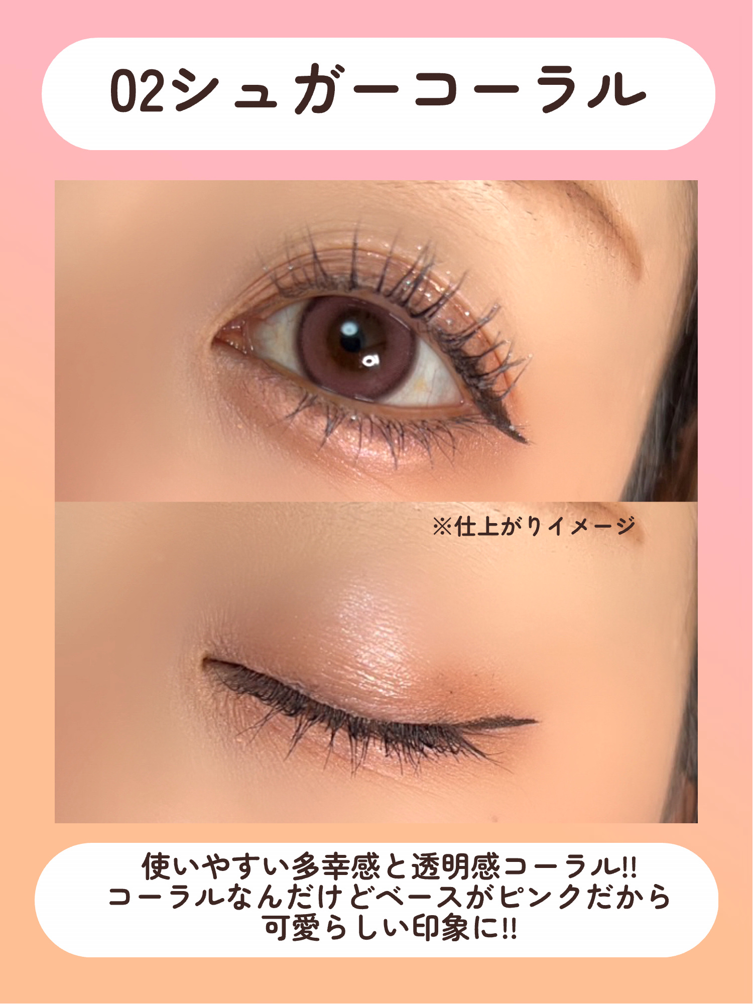 - <01 エンジェリックモーブ> 合成フルオロフロゴパイト、タルク、酸化チタン、フェニルトリメチコン、ホウケイ酸(Ca/Al)、リンゴ酸ジイソステアリル、シリカ、ホウケイ酸(Ca/チタン)、マイカ、ステアリン酸亜鉛、水添ポリイソブテン、ダイマージリノール酸ダイマージリノレイルビス(ベヘニル/イソステアリル/フィトステリル)、ジメチコン、酸化鉄、グンジョウ、1,2-ヘキサンジオール、イソノナン酸イソノニル、ジ安息香酸PG、トリエトキシカプリリルシラン、エチルヘキシルグリセリン、ジメチコンクロスポリマー、酸化スズ、水酸化Al、ミリスチン酸Al、赤226 <02 シュガーコーラル> タルク、合成フルオロフロゴパイト、酸化チタン、ホウケイ酸(Ca/Al)、フェニルトリメチコン、ホウケイ酸(Ca/チタン)、リンゴ酸ジイソステアリル、マイカ、シリカ、ステアリン酸亜鉛、水添ポリイソブテン、ダイマージリノール酸ダイマージリノレイルビス(ベヘニル/イソステアリル/フィトステリル)、ジメチコン、酸化鉄、1,2-ヘキサンジオール、イソノナン酸イソノニル、ジ安息香酸PG、トリエトキシカプリリルシラン、エチルヘキシルグリセリン、ジメチコンクロスポリマー、酸化スズ、水酸化Al、ミリスチン酸Al、赤226、グンジョウ