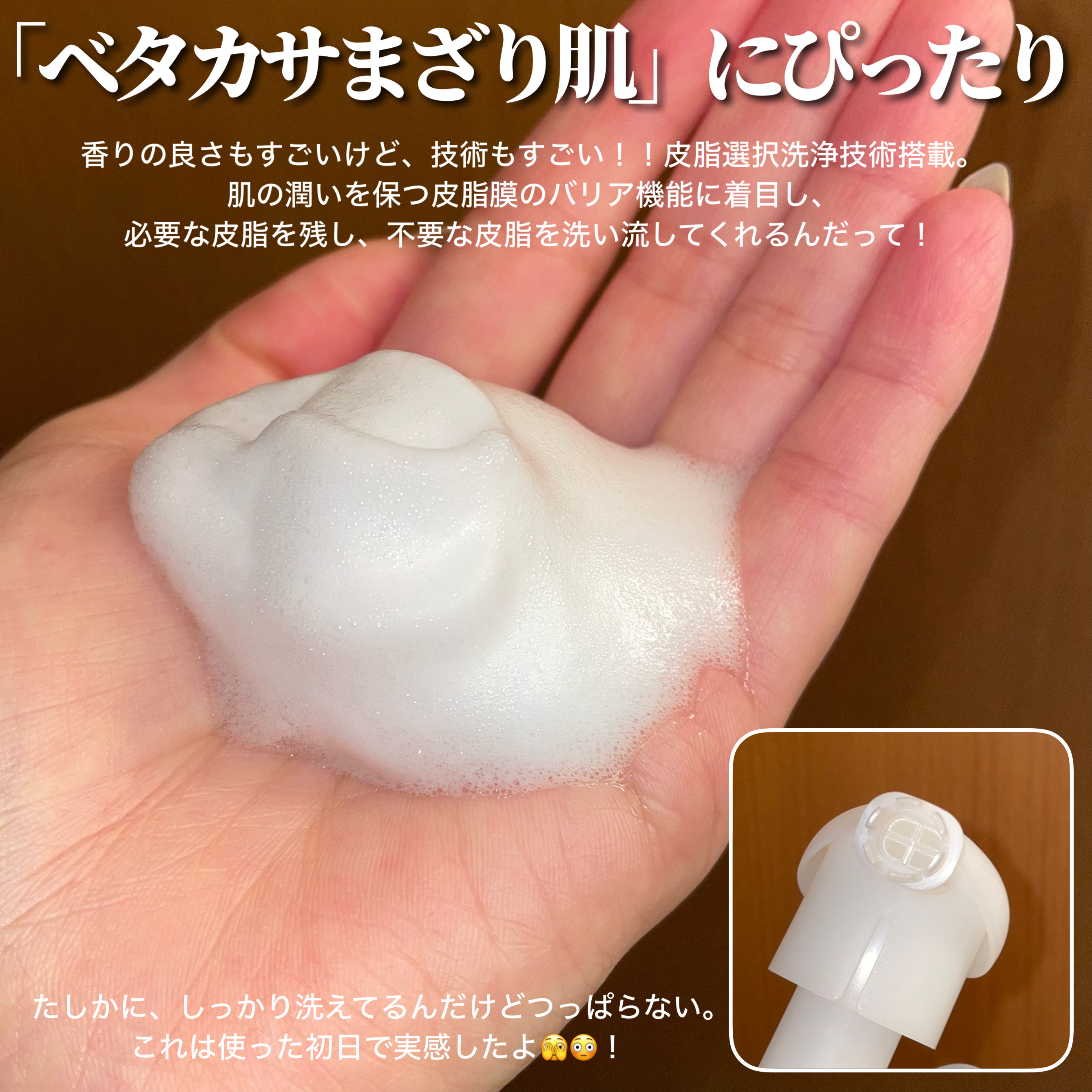 | 華やかに香るフルーツの甘い香りがすごく良い香り。 泡は一度でたっぷり出てきて、ストレスなし。 身体にスーッと伸ばせます。 | 詳細を見る | |