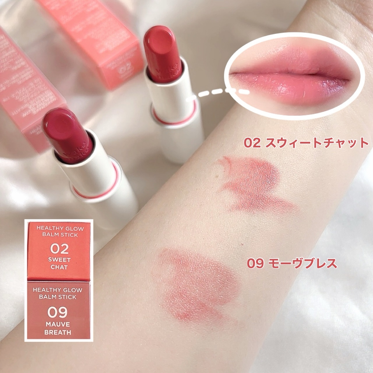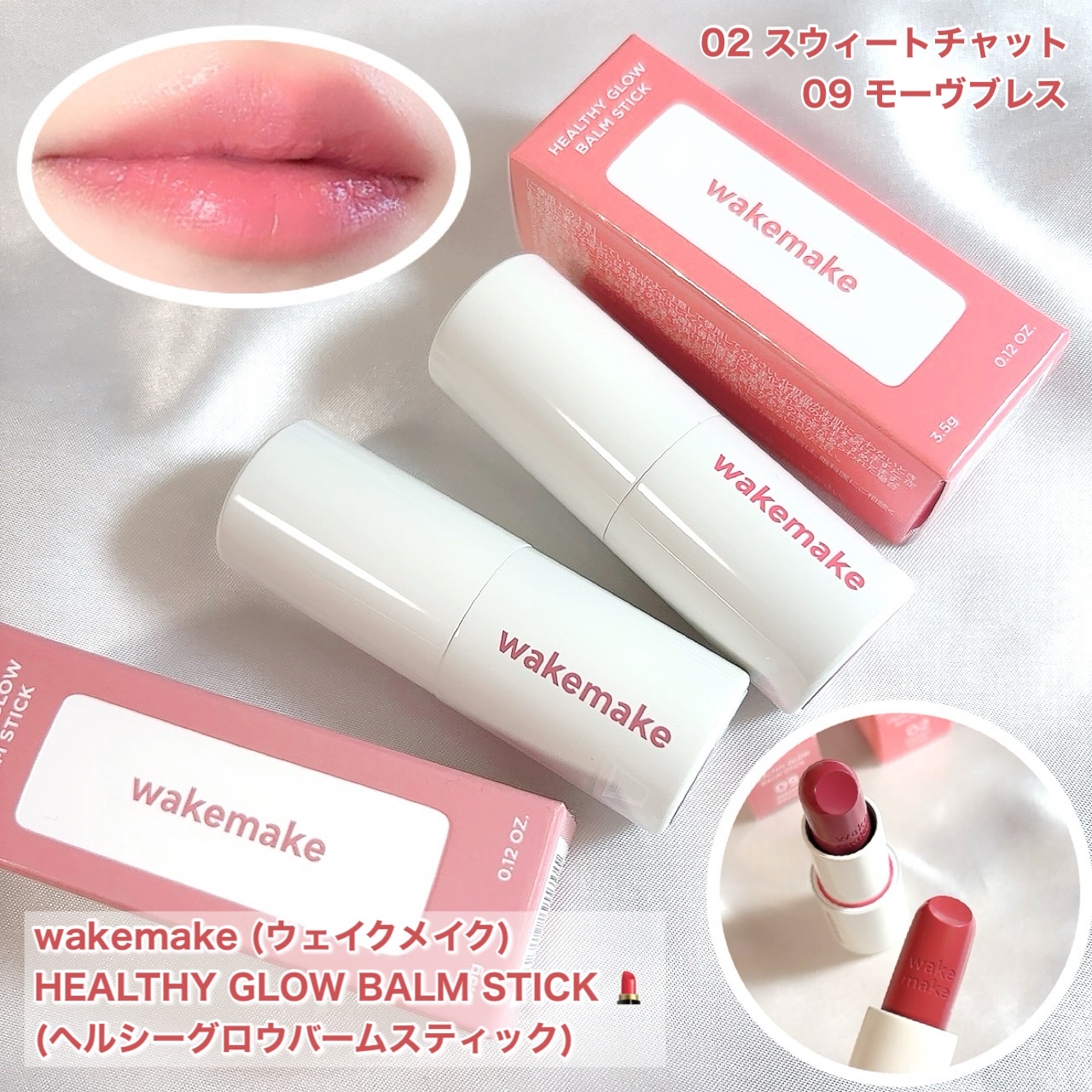 wakemakeHEALTHYGLOWBALMSTICK02スウィートチャット09モーヴブレスwakemakeは4月末からリブランディングしてロゴが小文字に!パケも可愛い🤍Amazon・全国バラショ(一部店舗除く)で販売中!唇がキレイに見える...