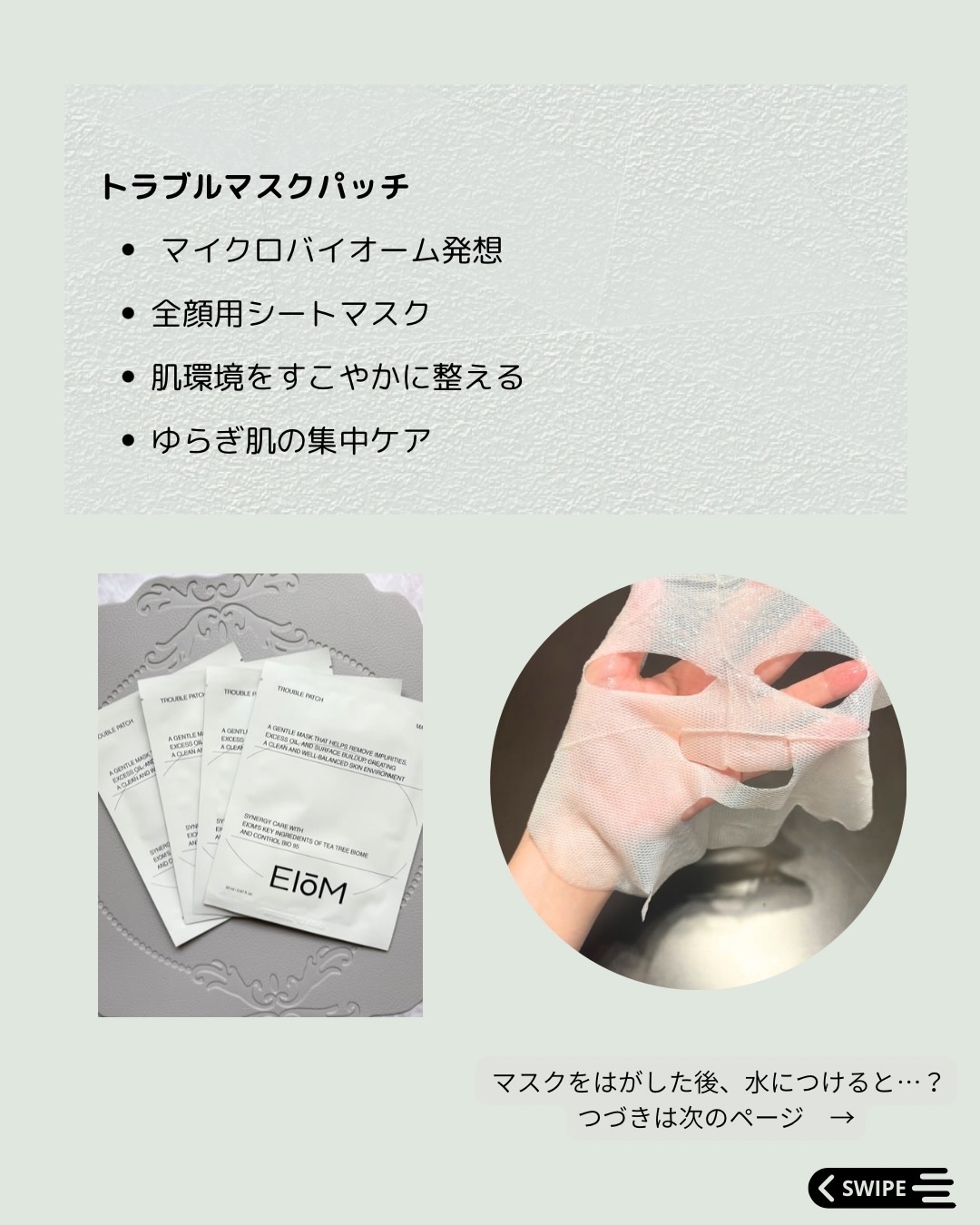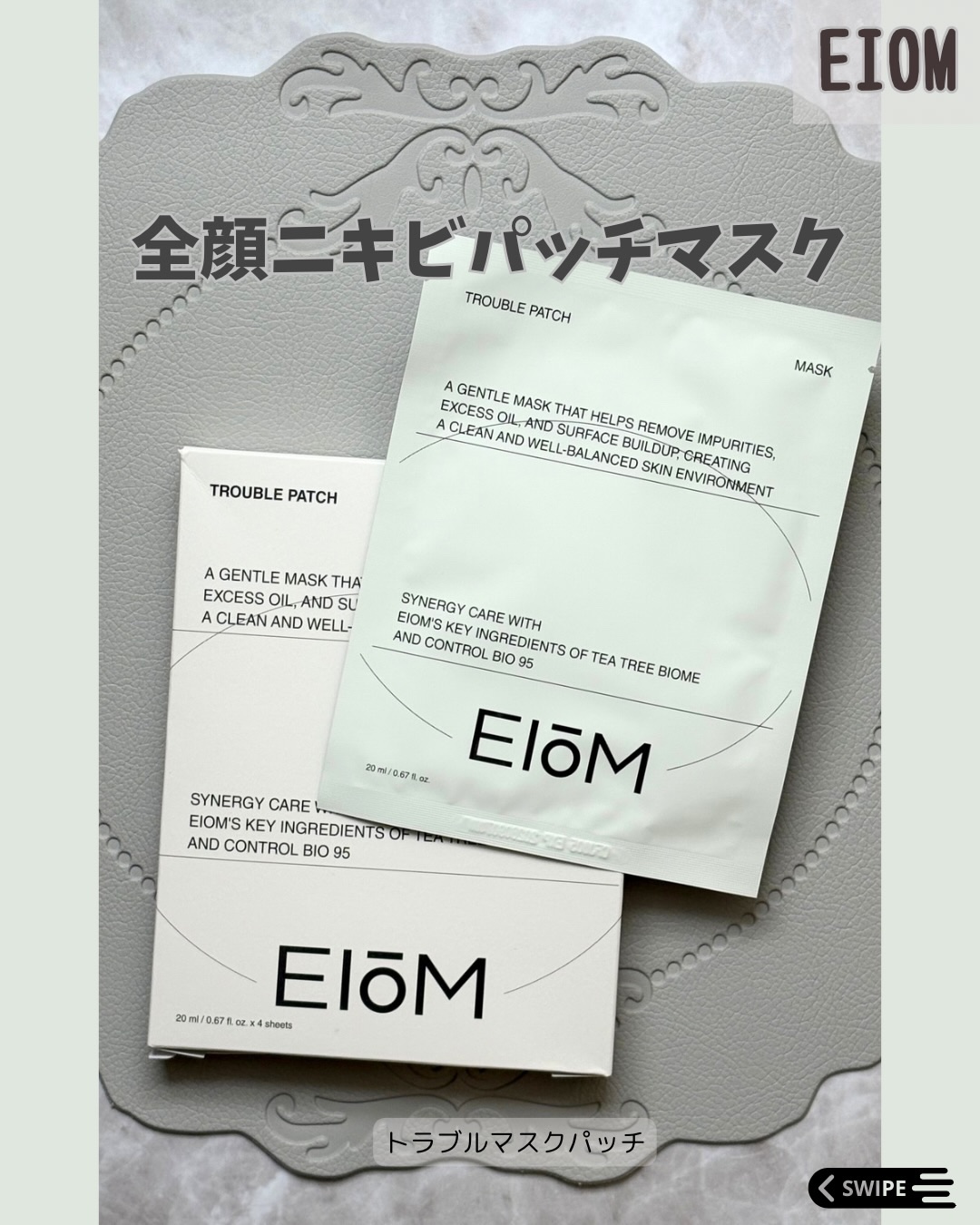 EIOM イオムトラブルパッチマスク4枚 ¥3,300(税込)EIOM(イオム)は、肌の中に存在する「マイクロバイオーム(肌常在菌バランス)」に着目し、その調和を整えることでトラブルの根本原因からアプローチする革新的なスキンケアブランド✔️1...